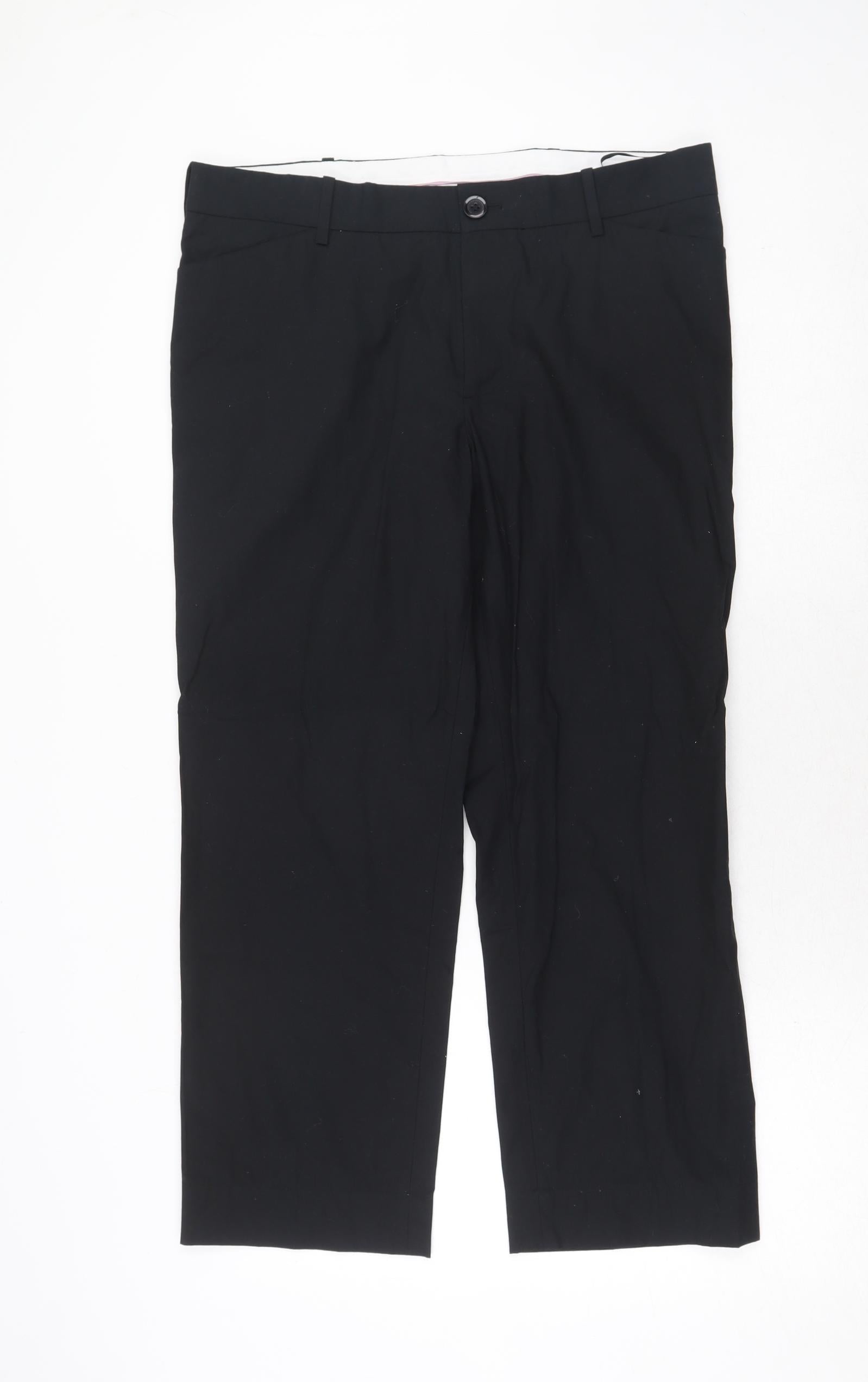 Betty Jackson Womens Black Cotton Dress Pants Trousers Size 14 Regular Zip