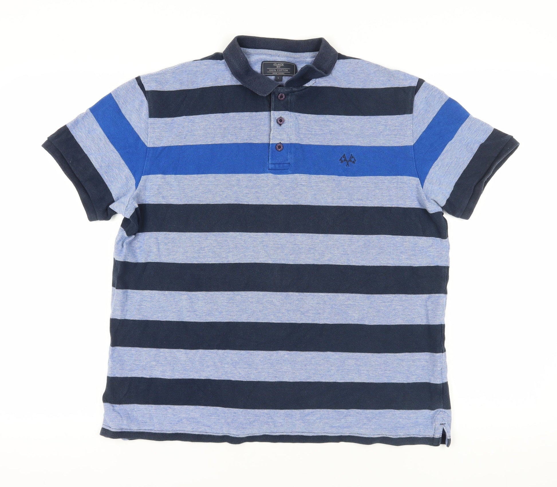 BHS Blue Striped Polo Shirt, Large, Short Sleeve