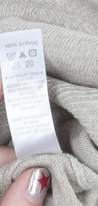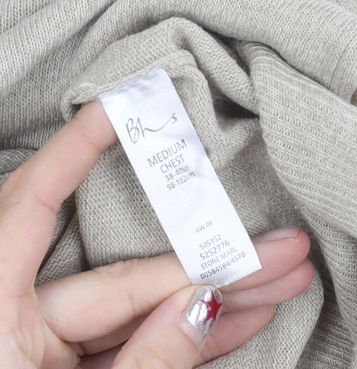 BHS Men's Beige Acrylic Crew Neck Pullover Jumper Size M