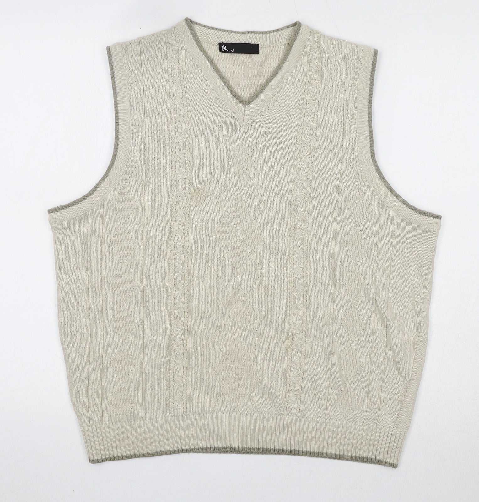 BHS Mens Beige V-Neck Herringbone Cotton Vest Jumper Size S Sleeveless