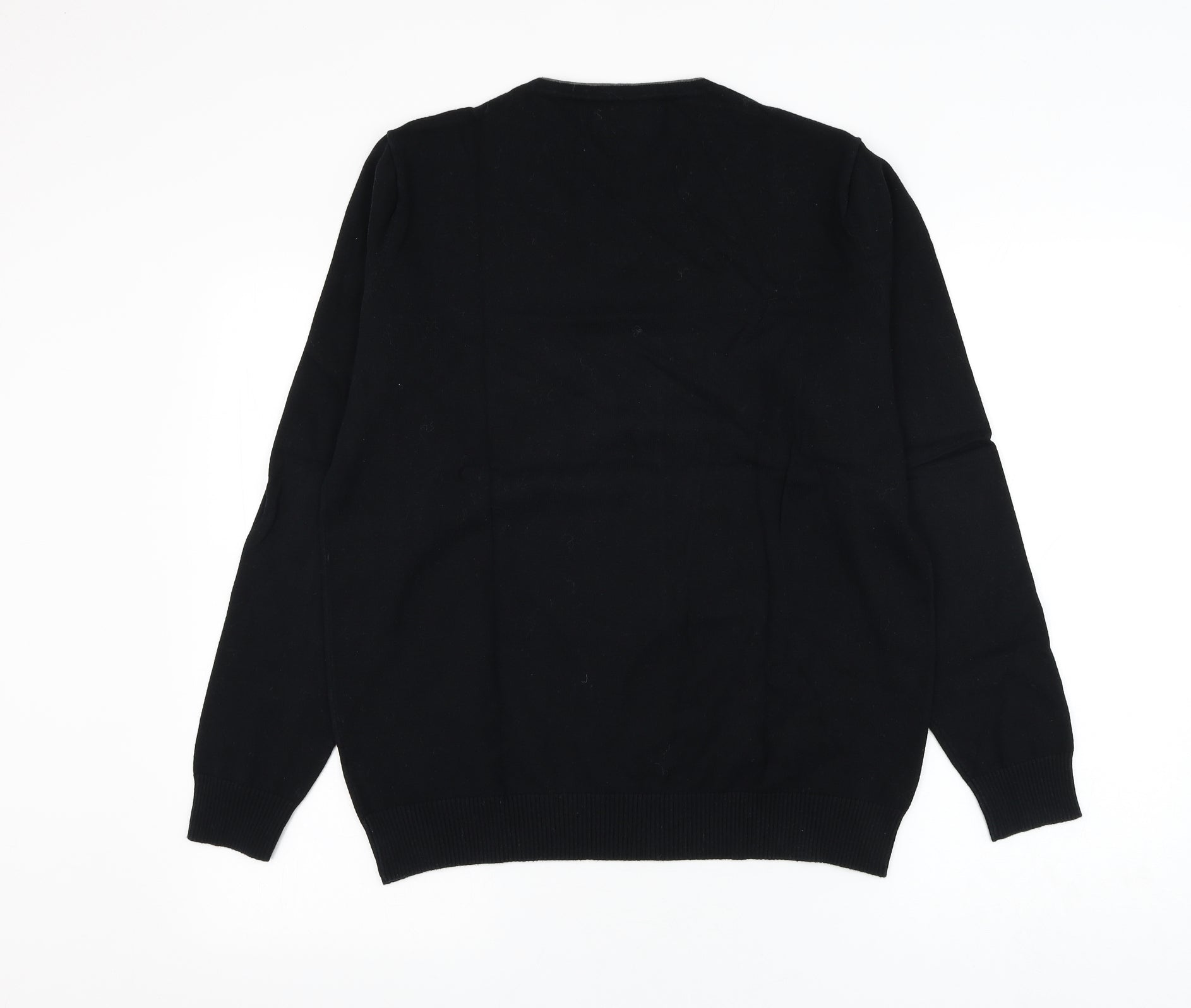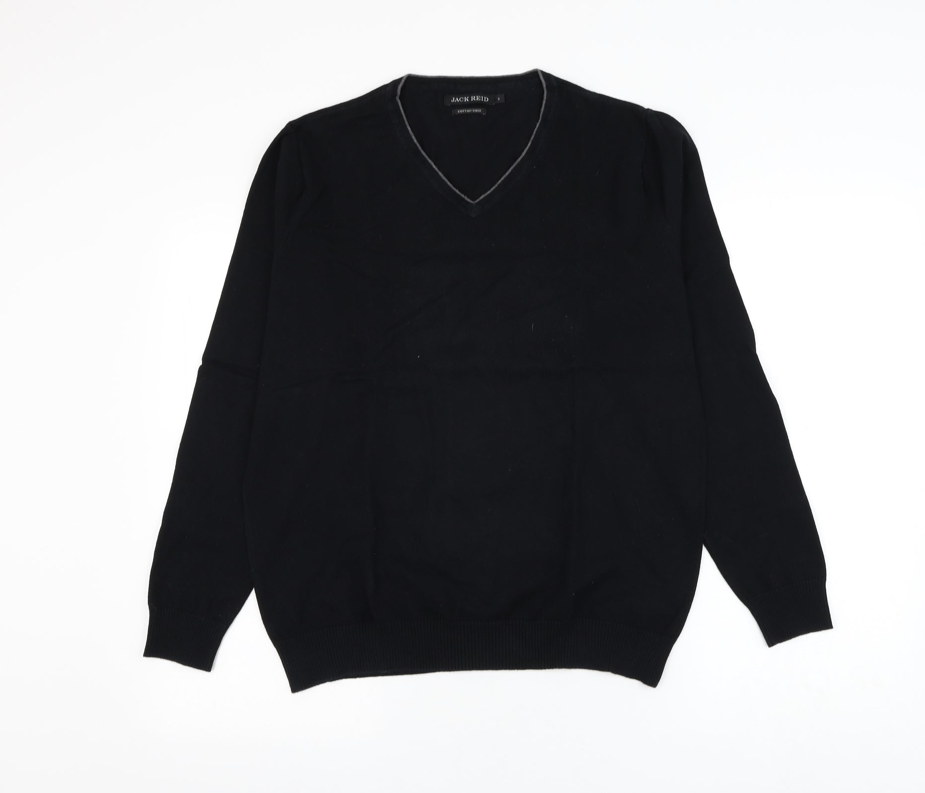 BHS Mens Black V-Neck Cotton Pullover Jumper Size S
