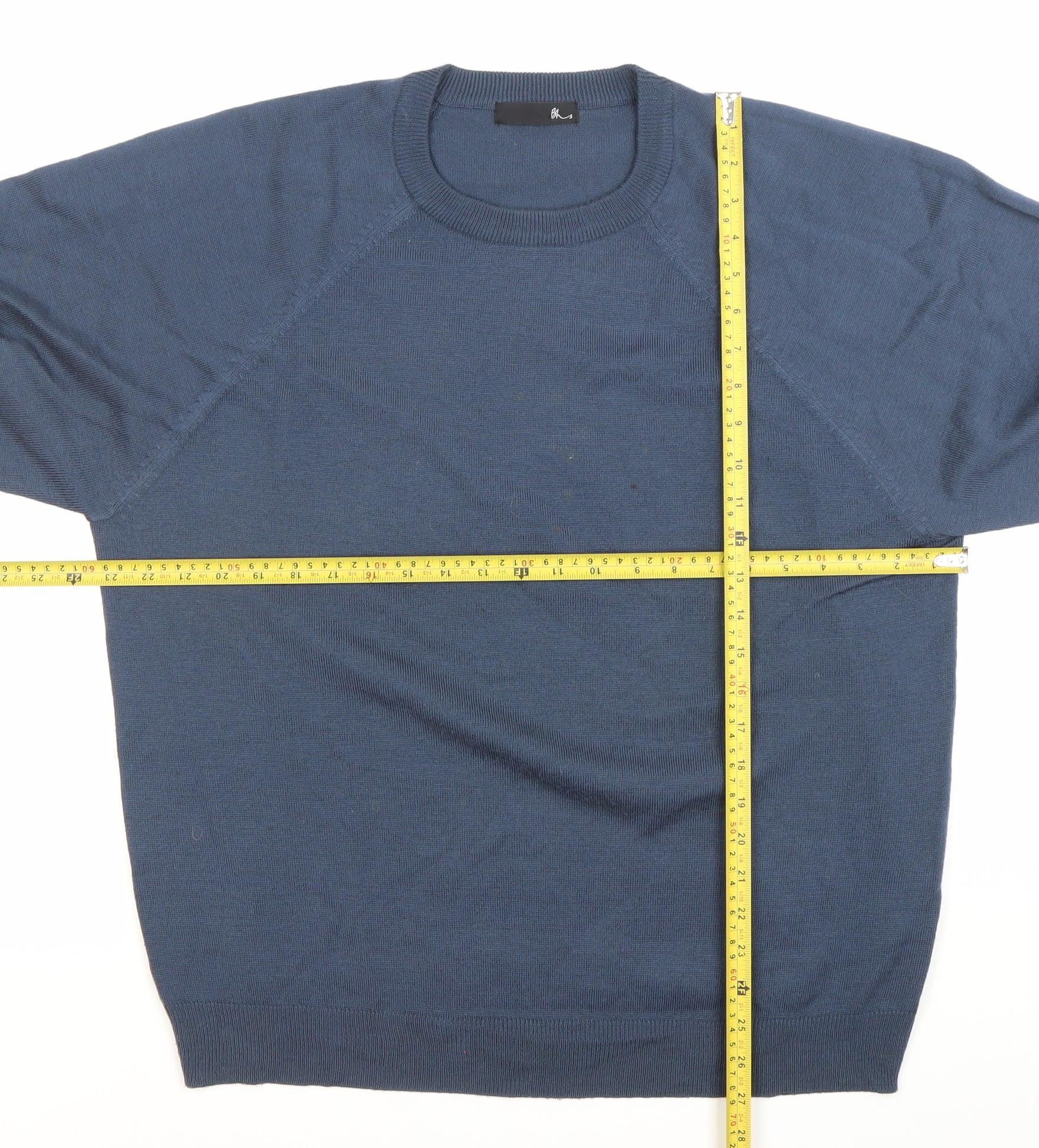 BHS Mens Blue Acrylic Crew Neck Pullover Jumper Size L