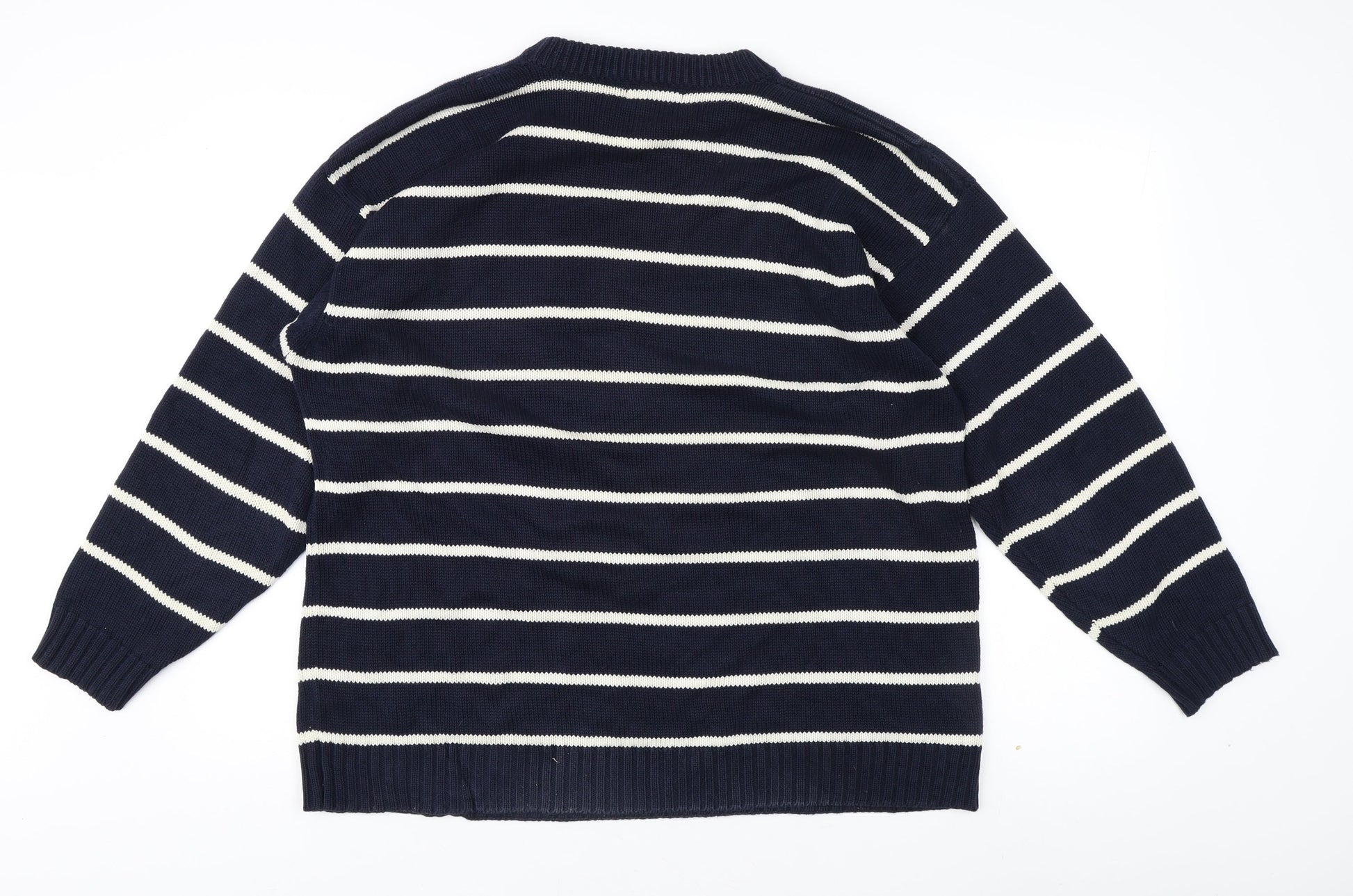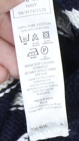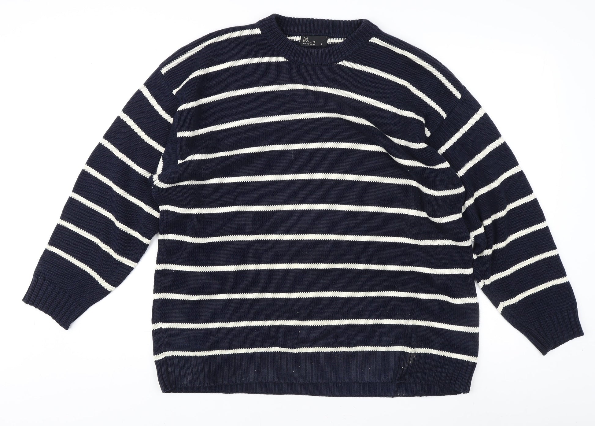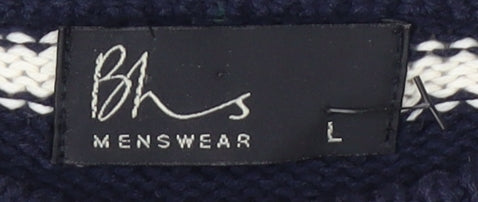BHS Men's Blue L Striped Cotton Pullover Jumper