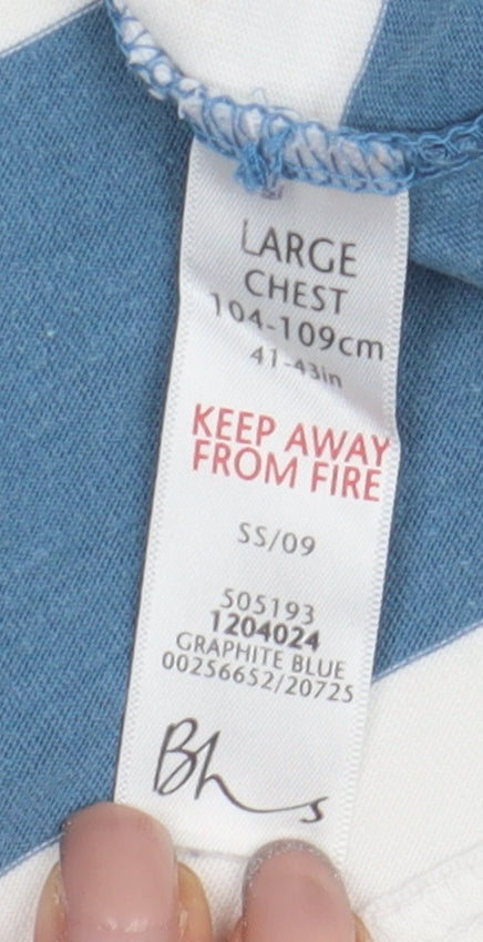 Bhs Men's Blue Striped Polo, Large, Casual Summer Top
