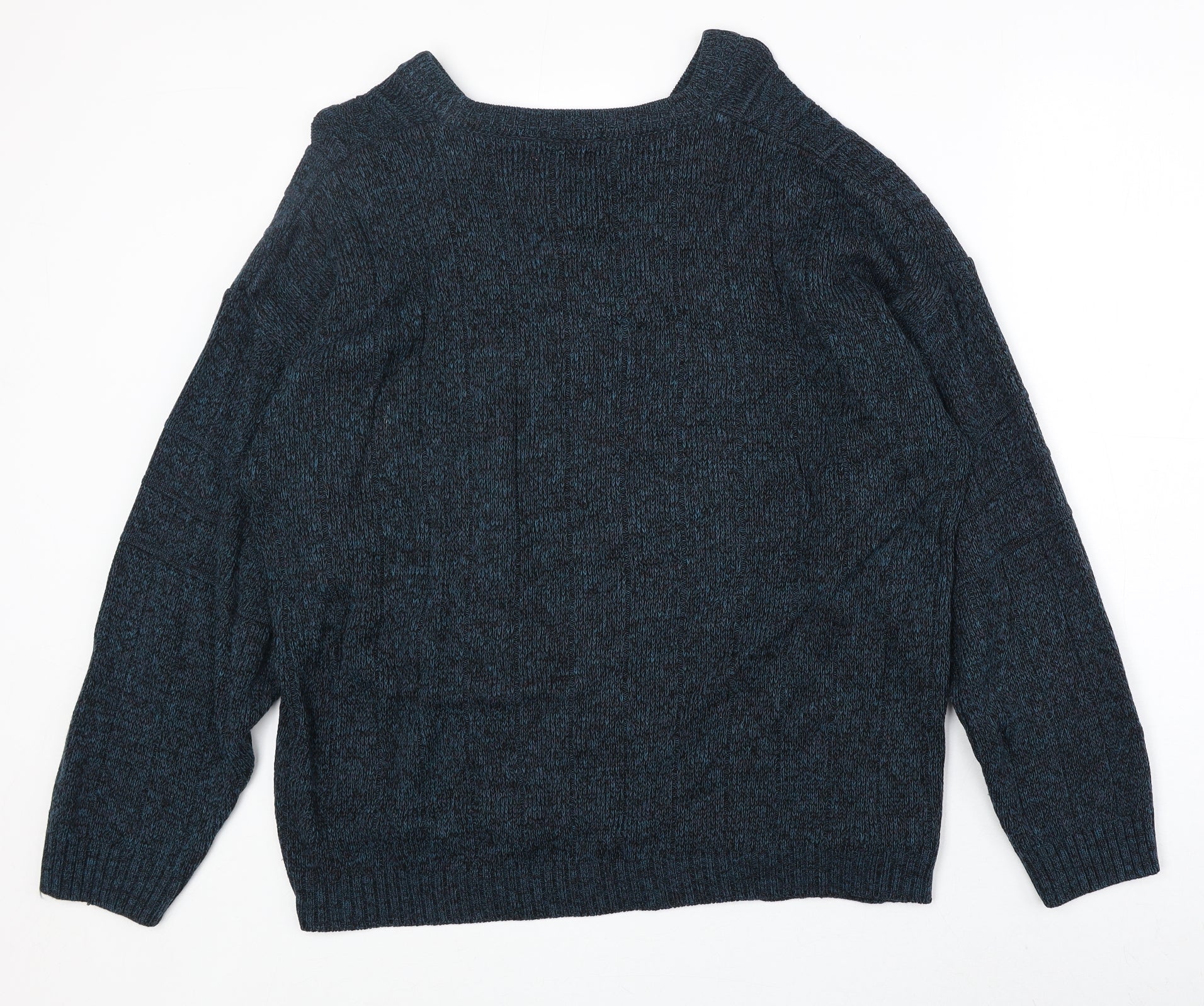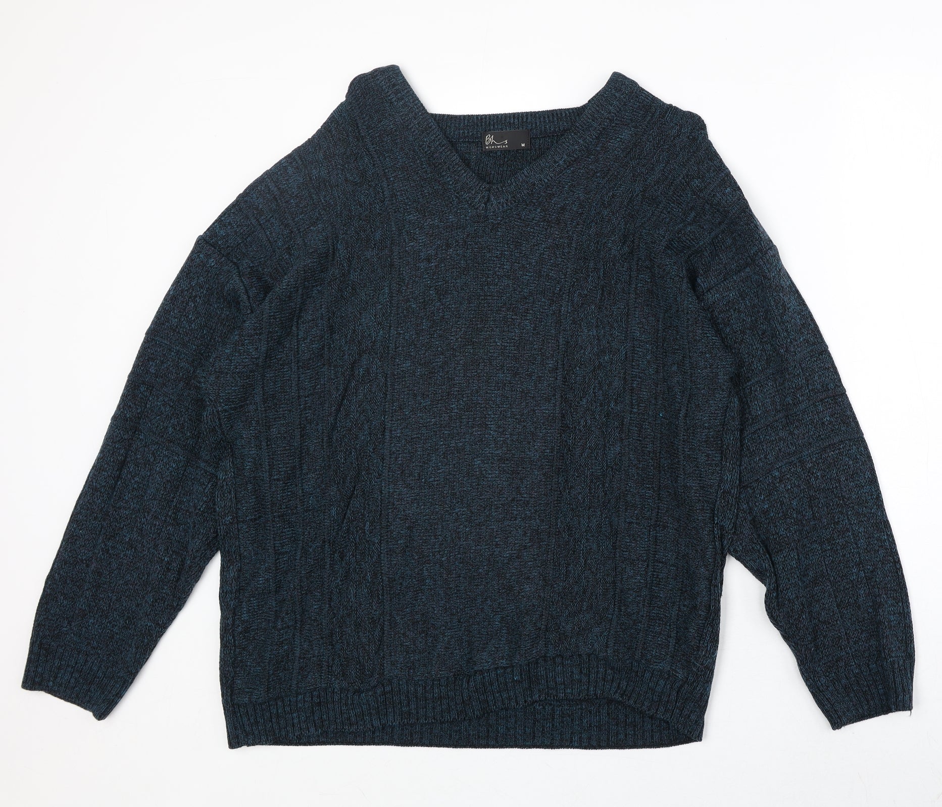 BHS Mens Blue V-Neck Acrylic Pullover Jumper Size M Long Sleeve