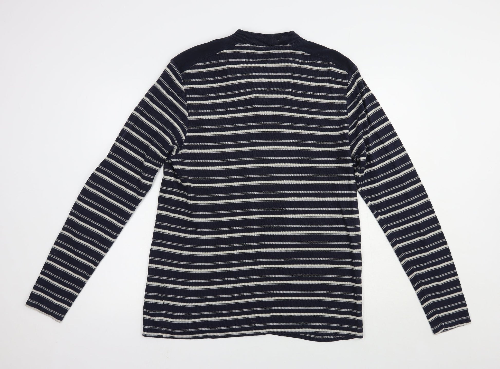 BHS Mens Blue V-Neck Striped Cotton Pullover Jumper Size L