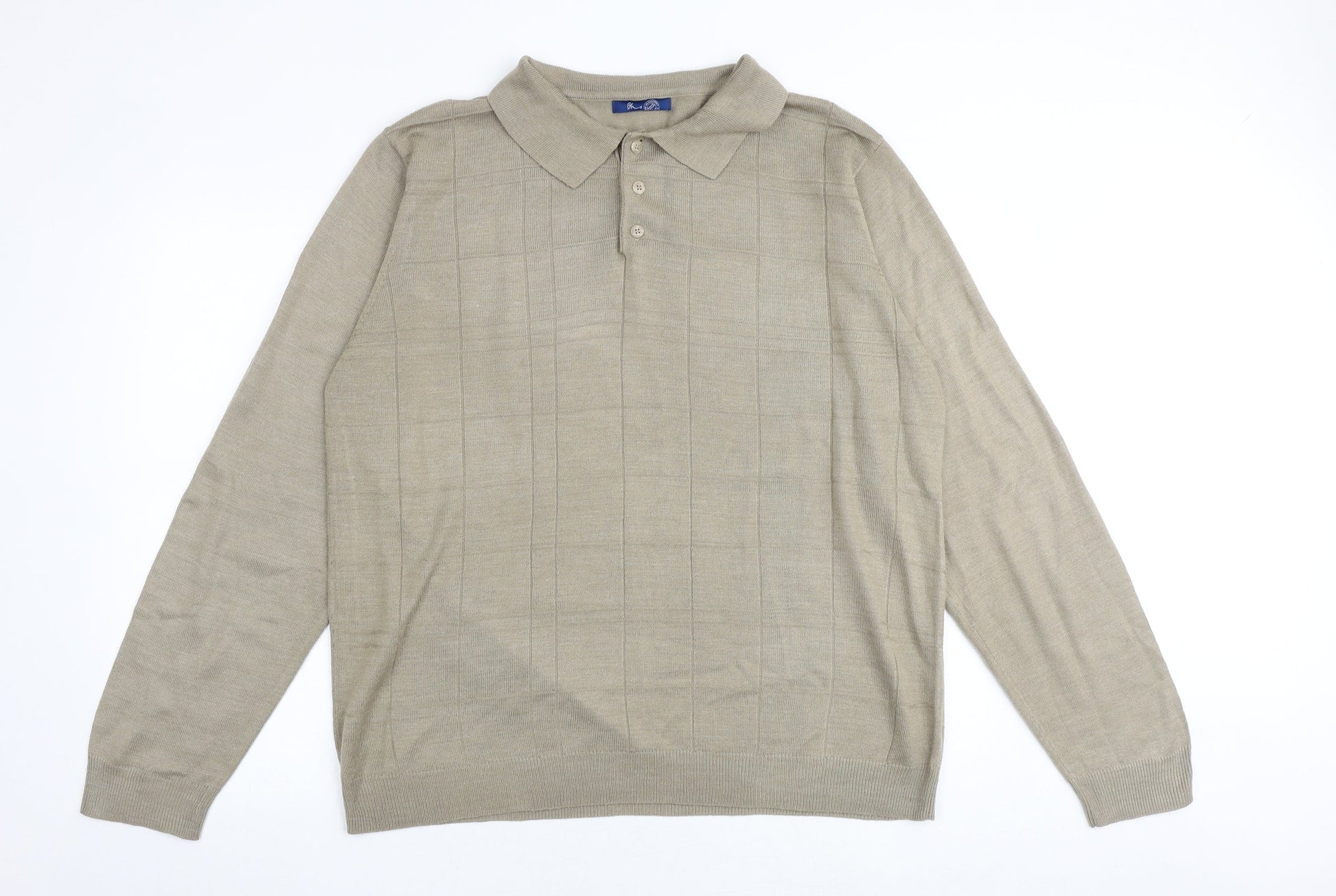 BHS Mens Brown Collared Check Acrylic Pullover Jumper Size L Long Sleeve