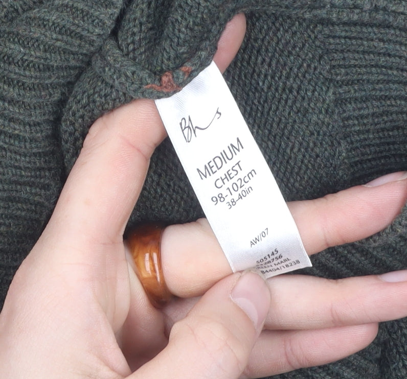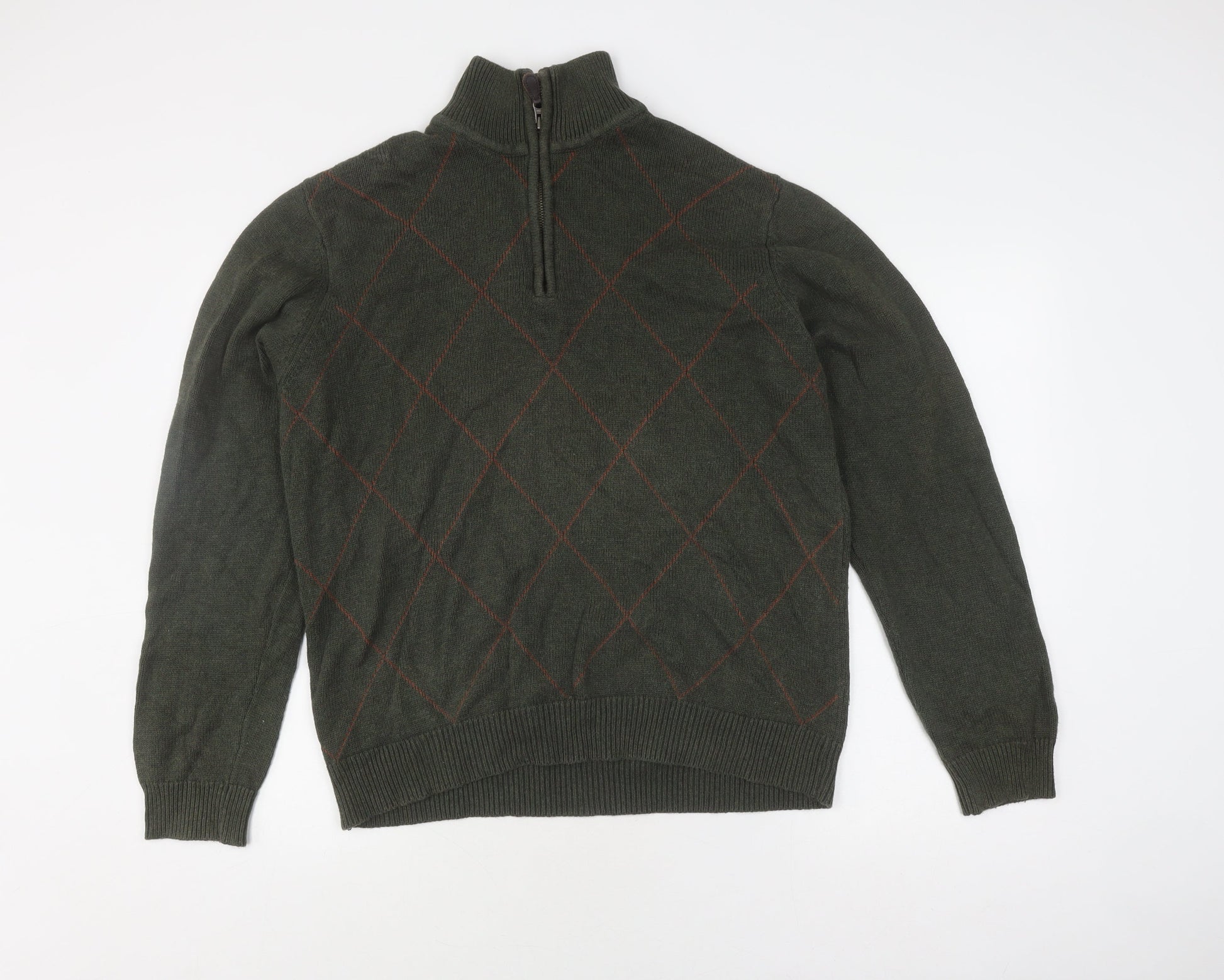 BHS Men's Green Argyle High Neck Pullover Jumper M