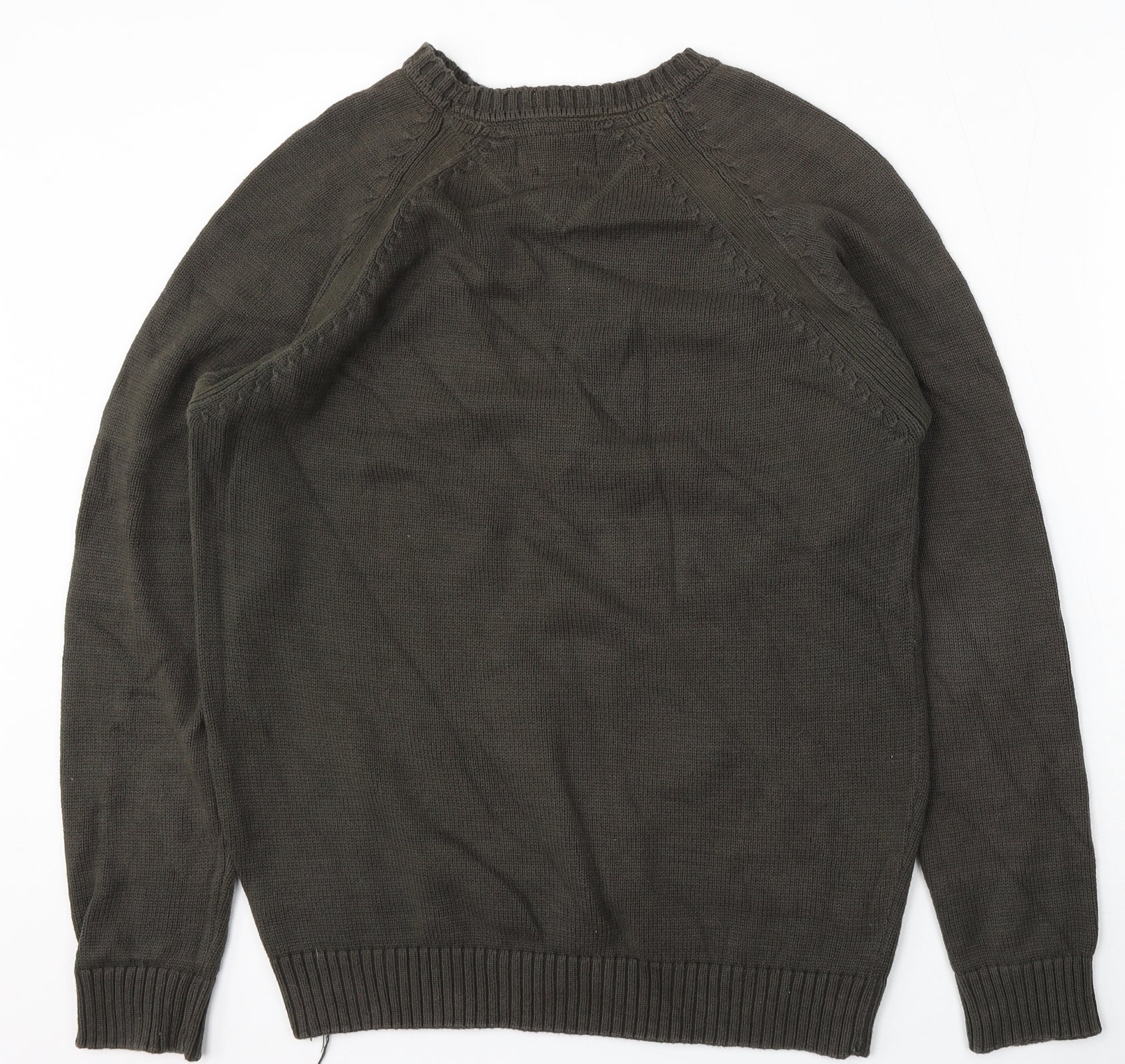 BHS Mens Green Round Neck Cotton Pullover Jumper Size S
