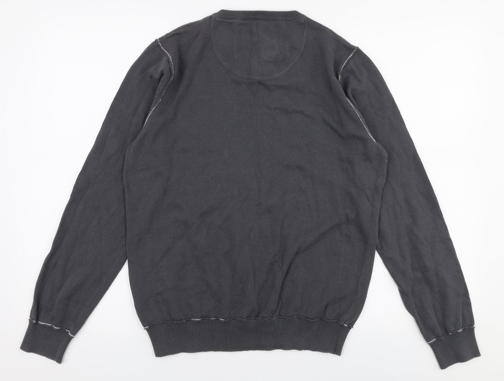 BHS Mens Grey V-Neck Cotton Pullover Jumper Size S