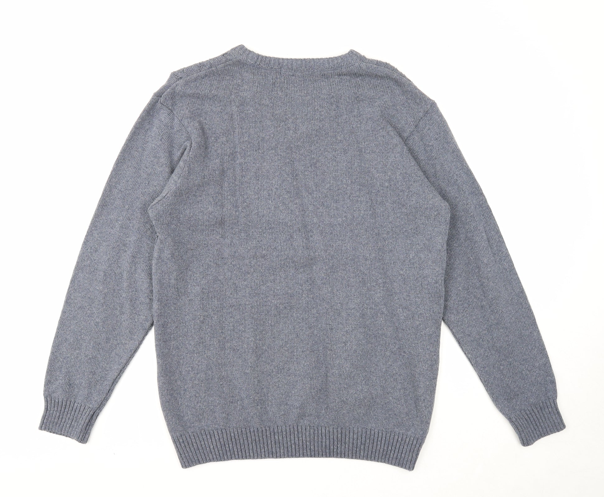BHS Mens Grey V-Neck Cotton Pullover Jumper Size S Long Sleeve