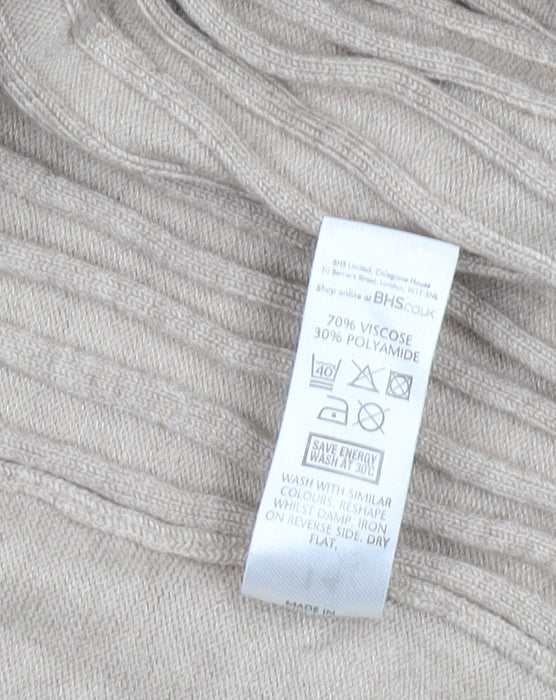 BHS Women’s Beige Long Sleeve Collarless Knit Cardigan Size 14