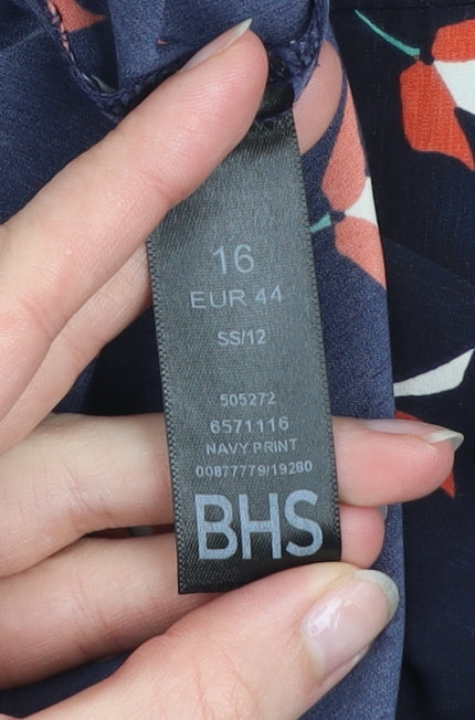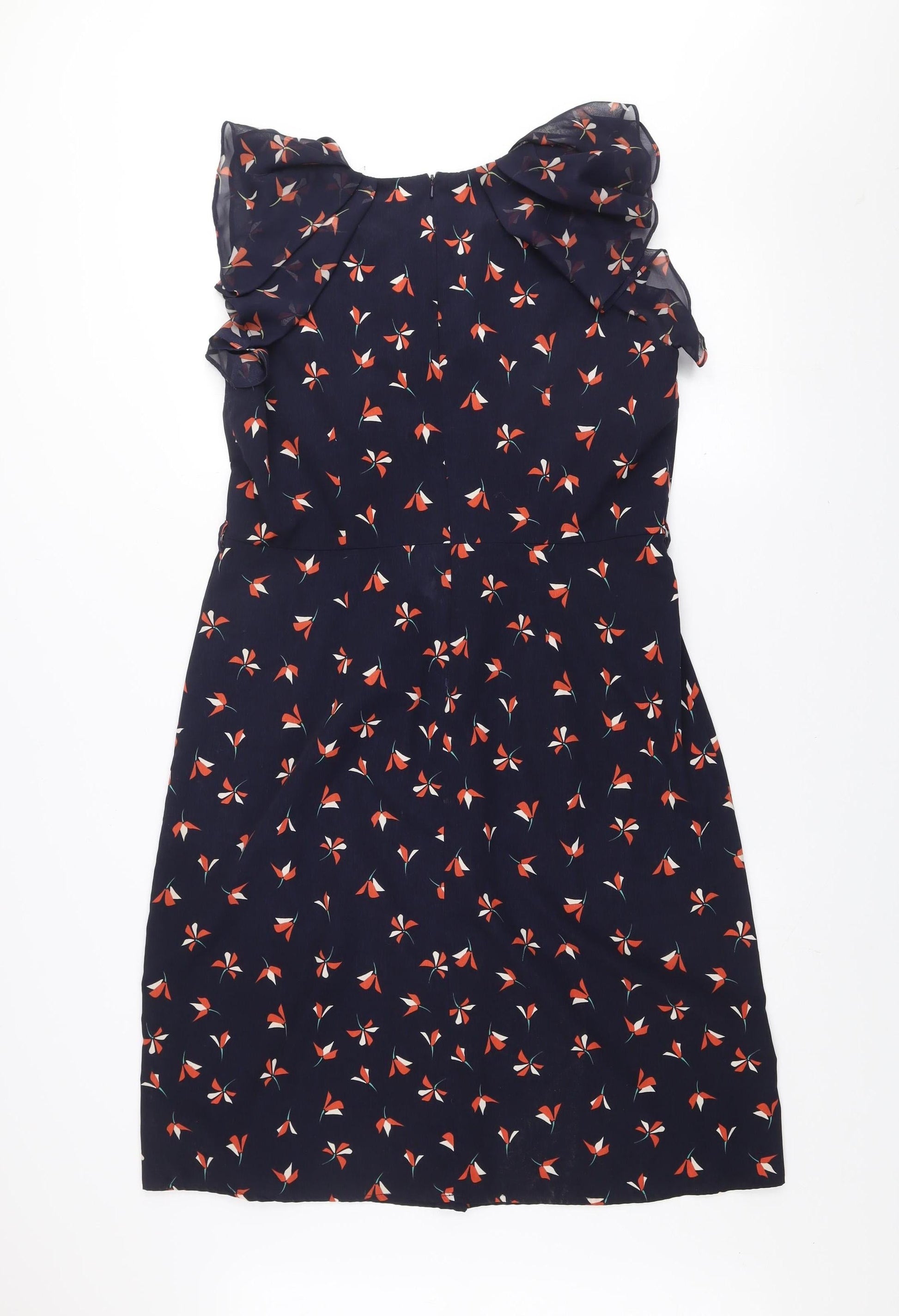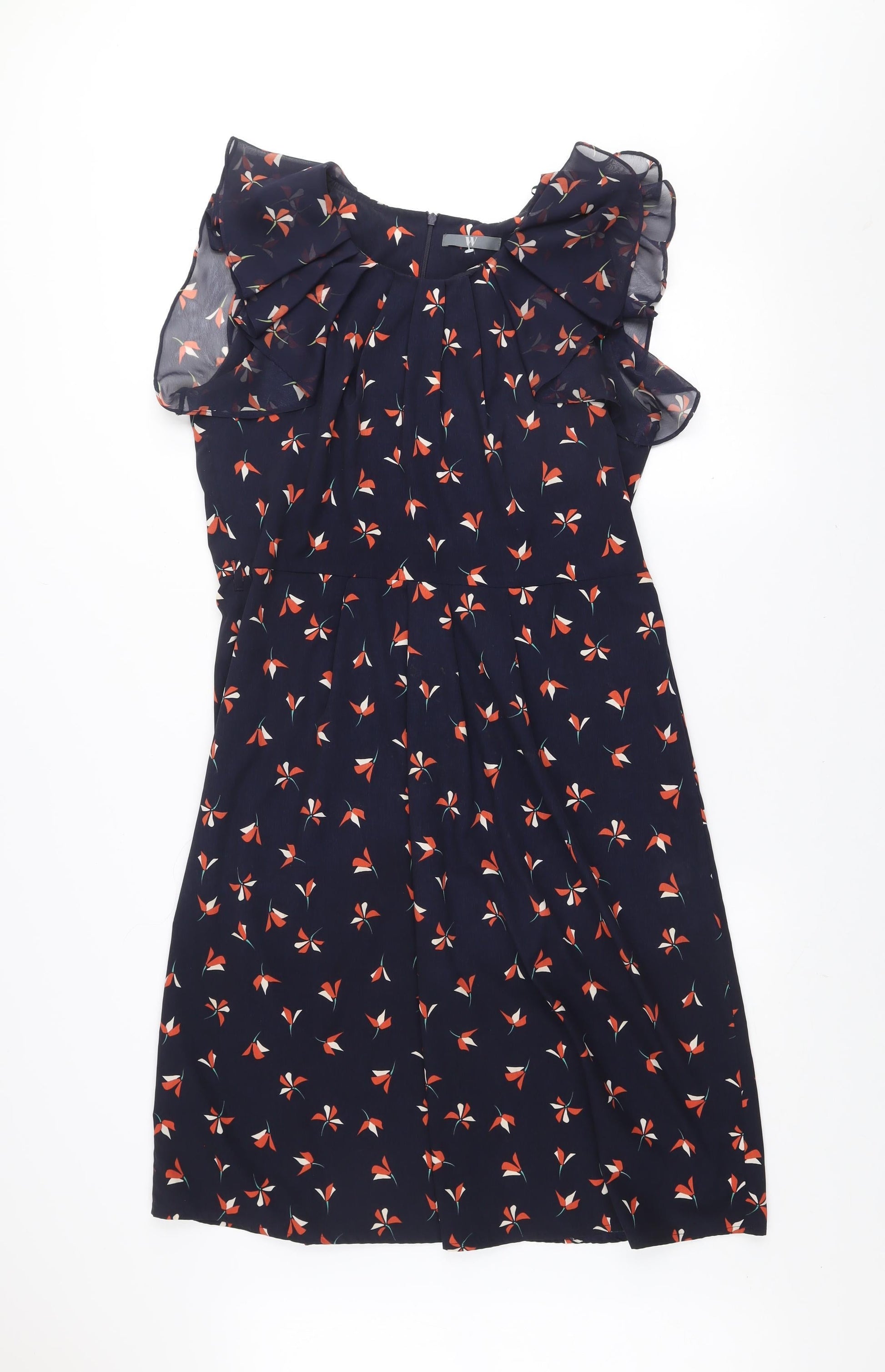 BHS Women’s Blue Floral Shift Dress Size 16 Flutter Sleeve Lightweight