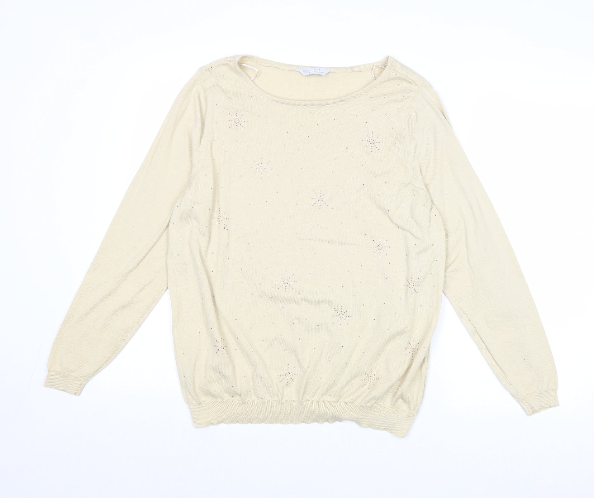 BHS Womens Beige Boat Neck Polyester Pullover Jumper Size 18