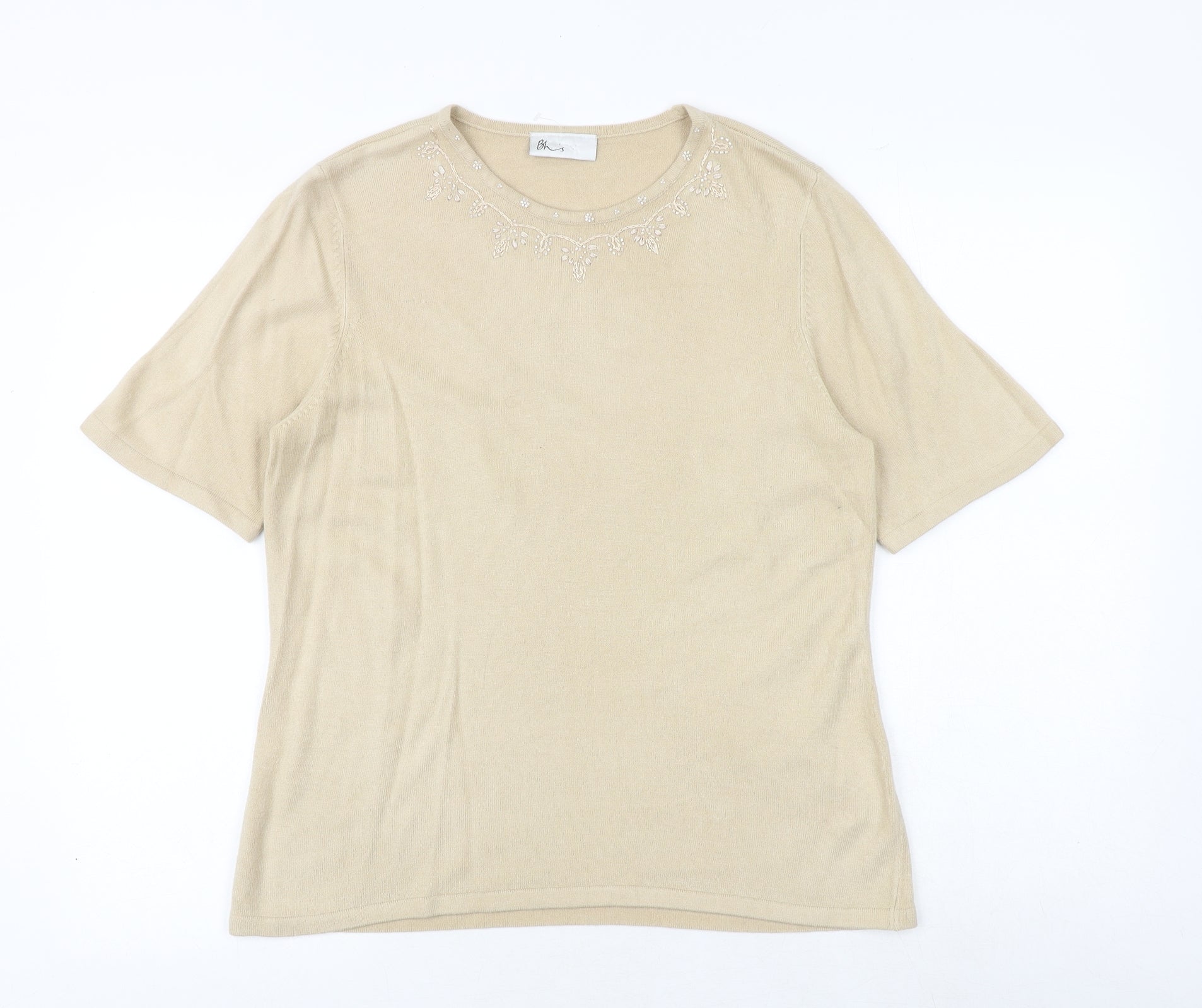BHS Womens Beige Round Neck Acrylic Pullover Jumper Size 18