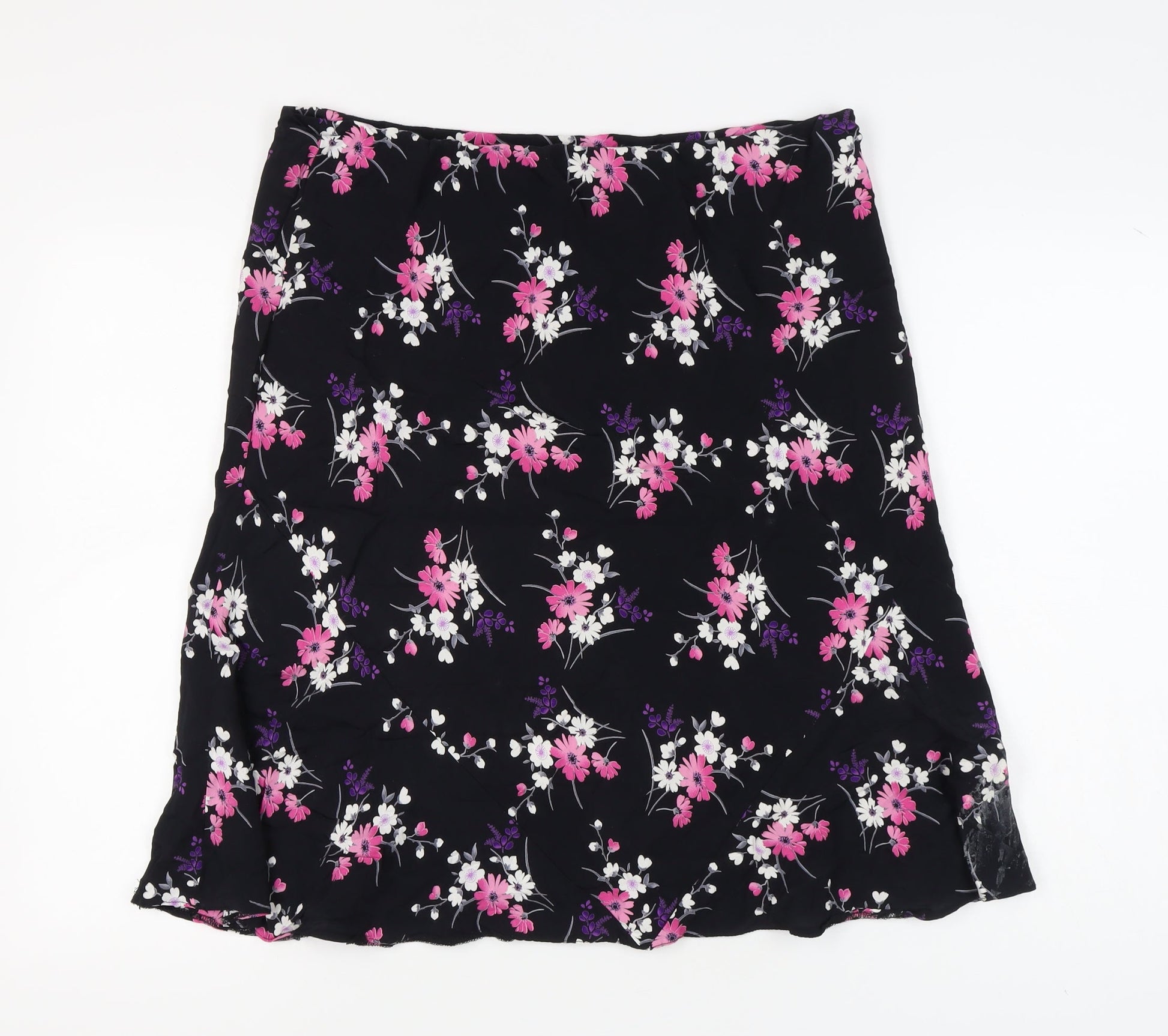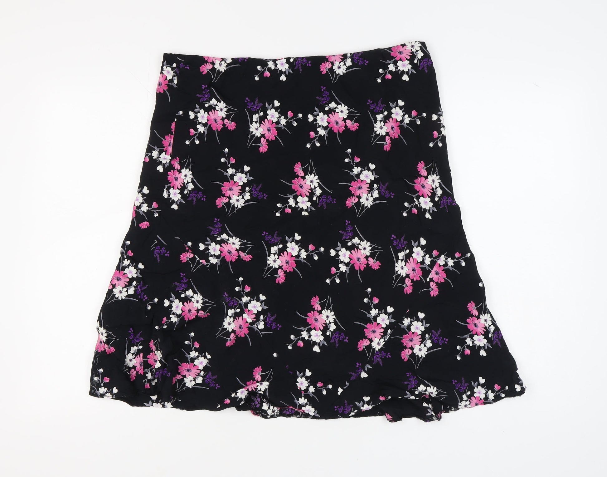 BHS Women's Black Floral A-Line Skirt Size 16