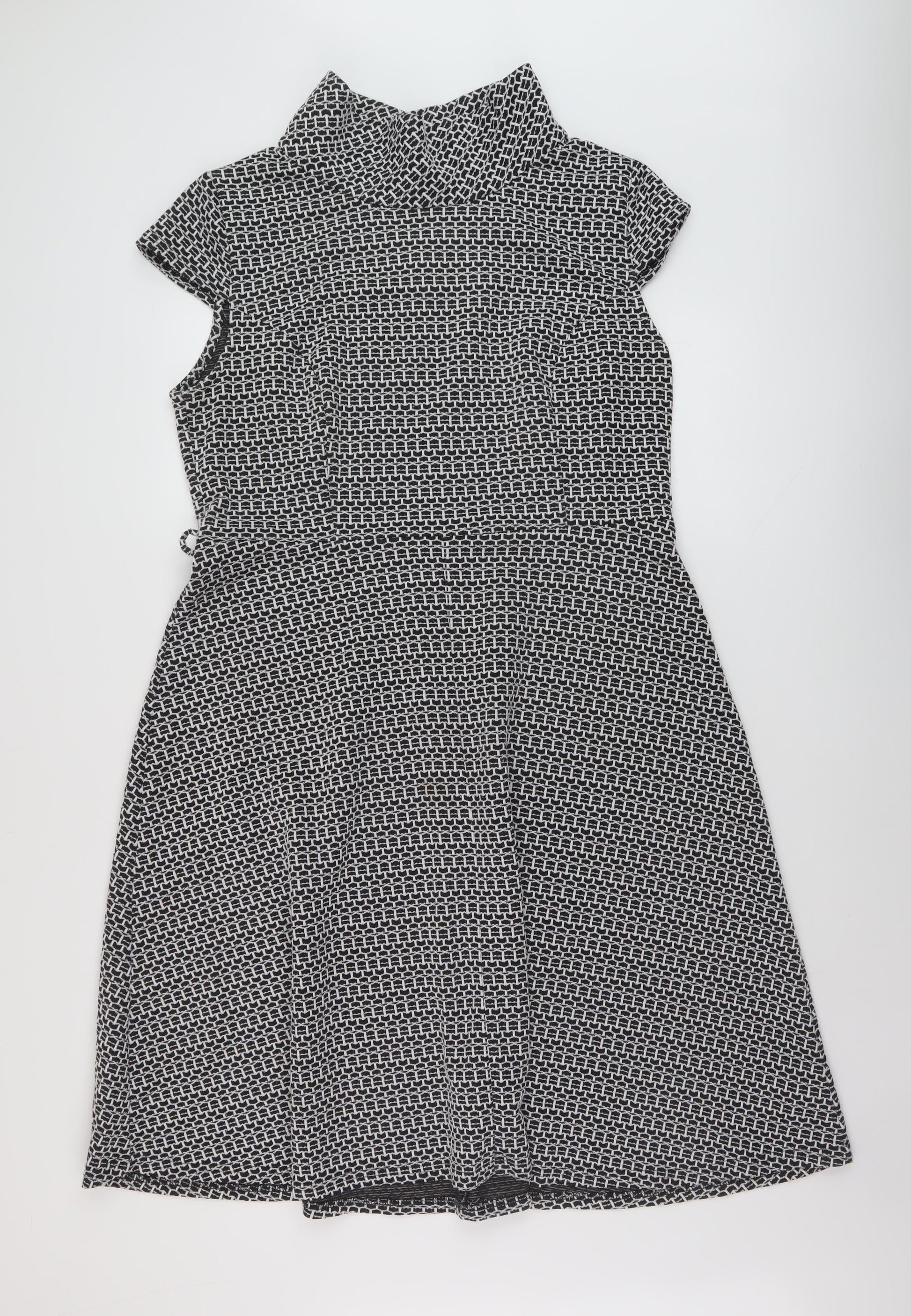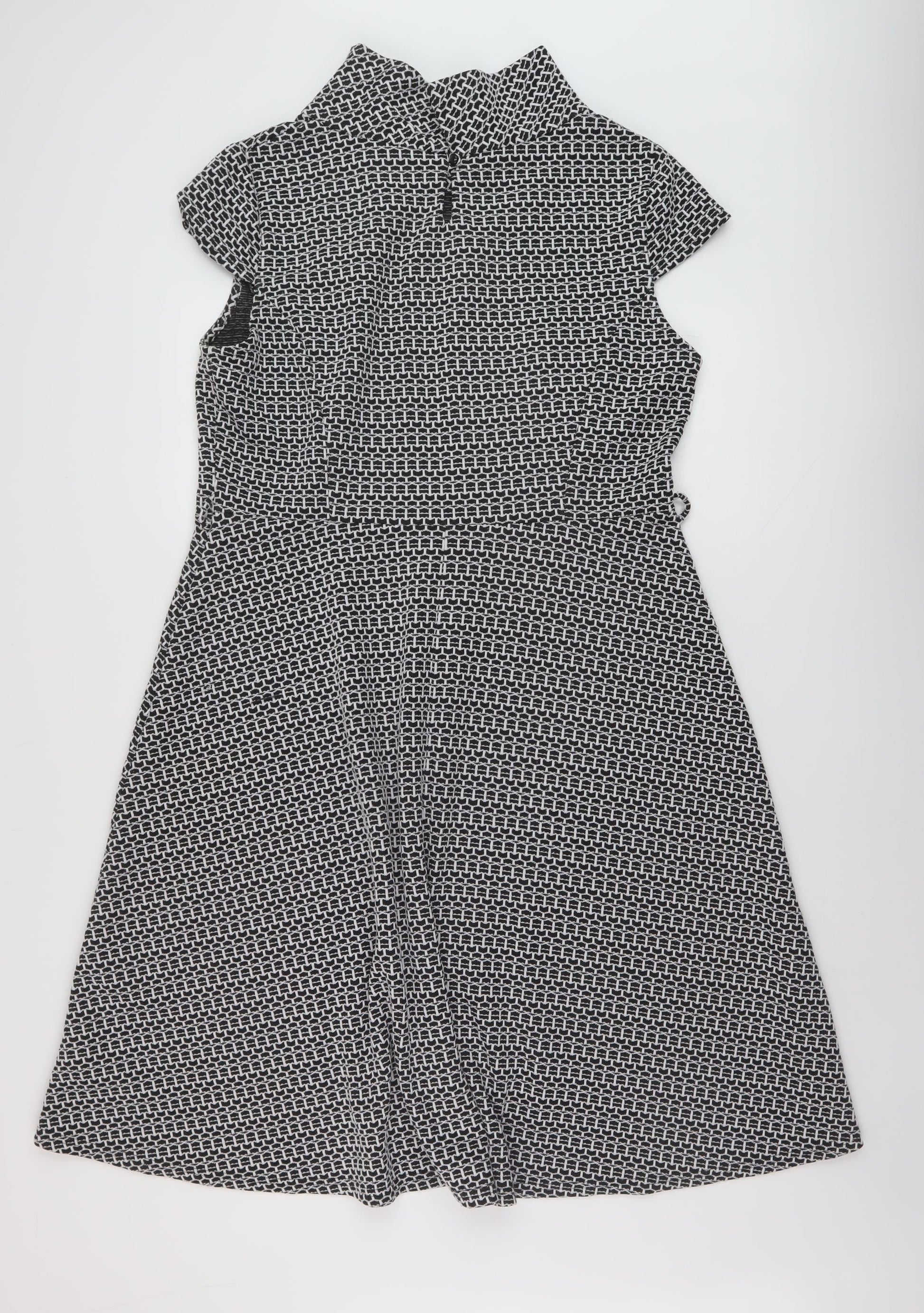 BHS Womens Black Geometric Polyester A-Line Size 18 Mock Neck Pullover