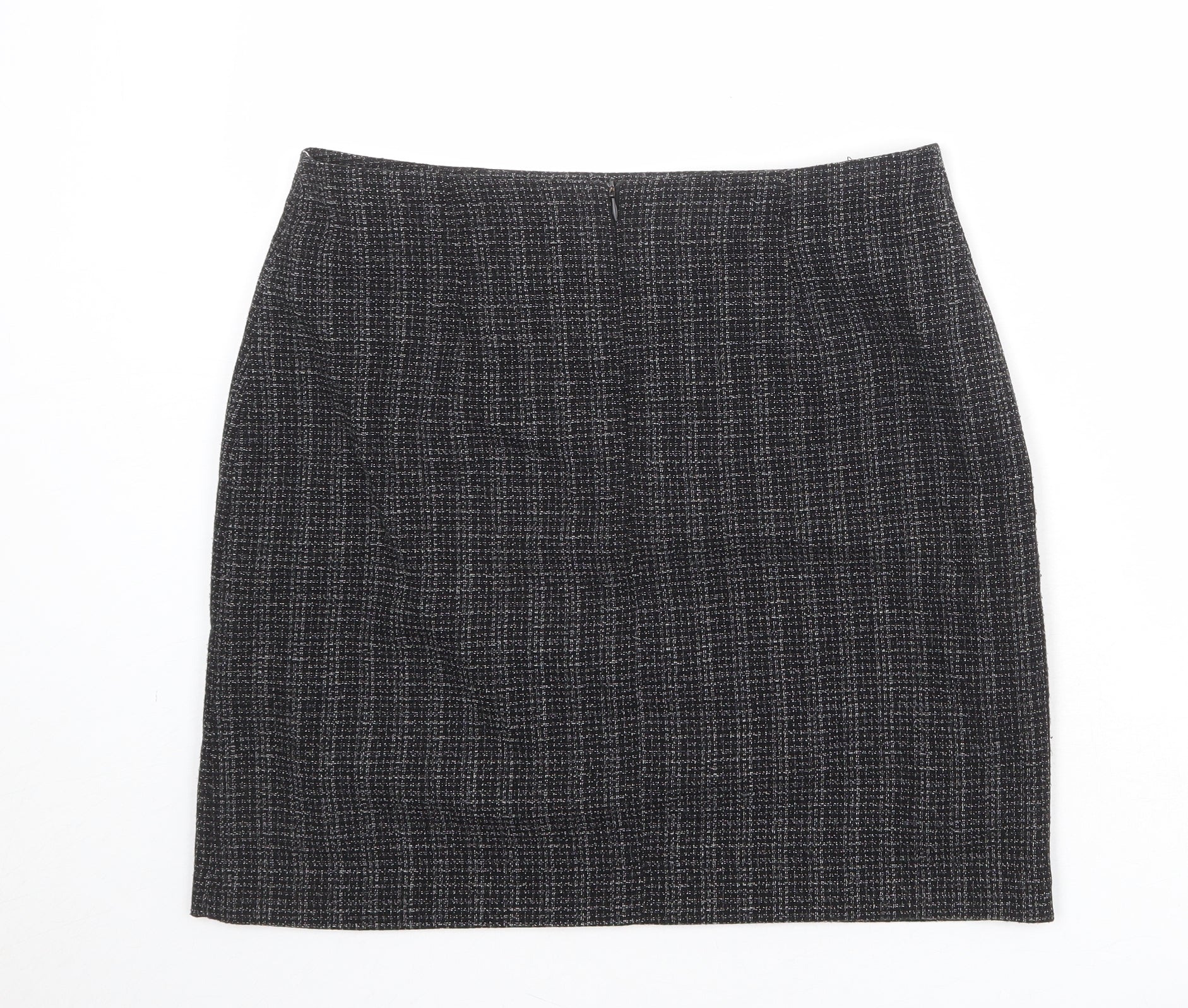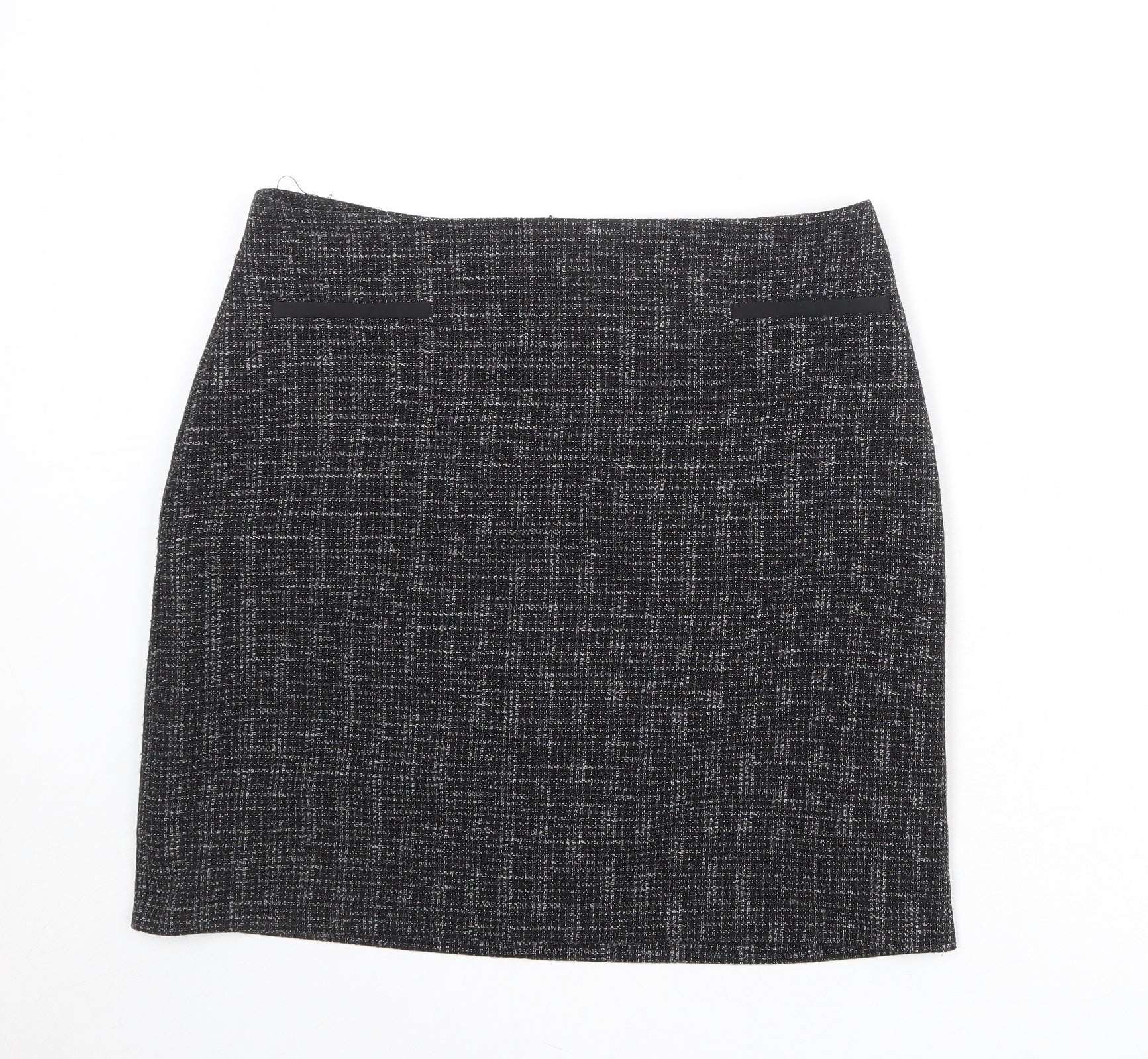 BHS Womens Black Geometric Polyester A-Line Skirt Size 14 Zip