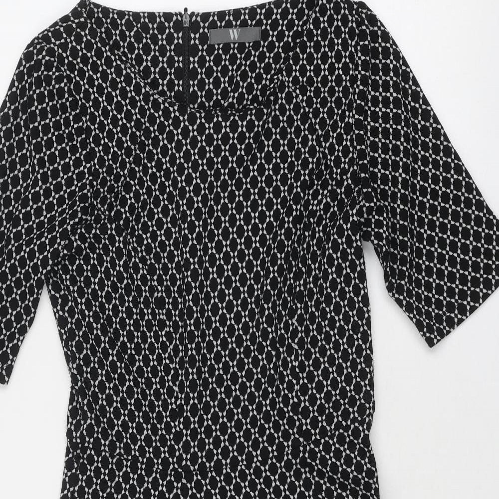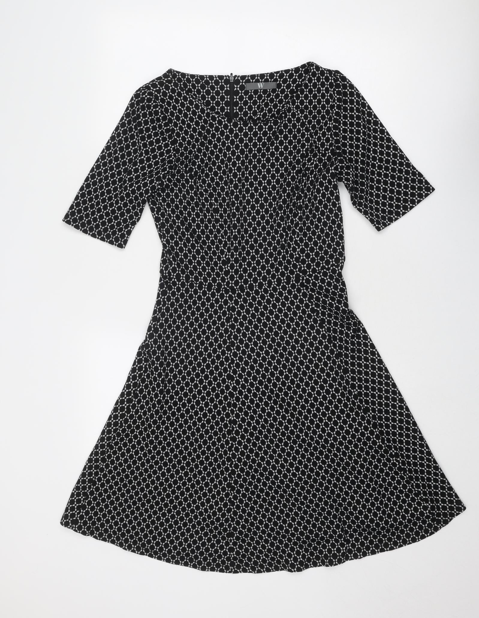 BHS Womens Black Geometric Viscose Fit & Flare Size 10 Round Neck Zip