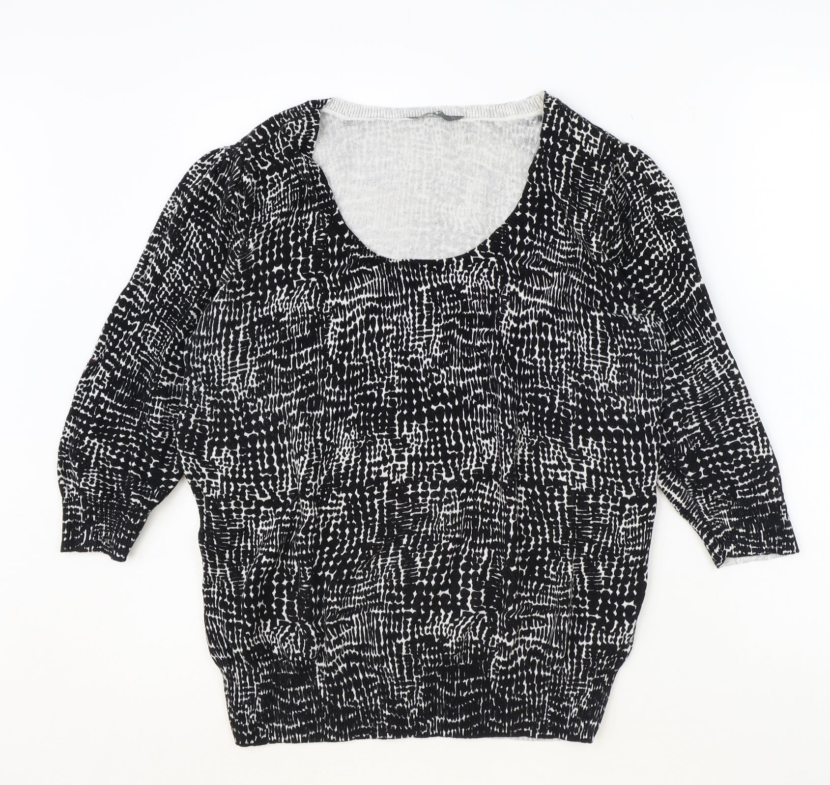 BHS Womens Black Round Neck Geometric 100% Cotton Pullover Jumper Size 16