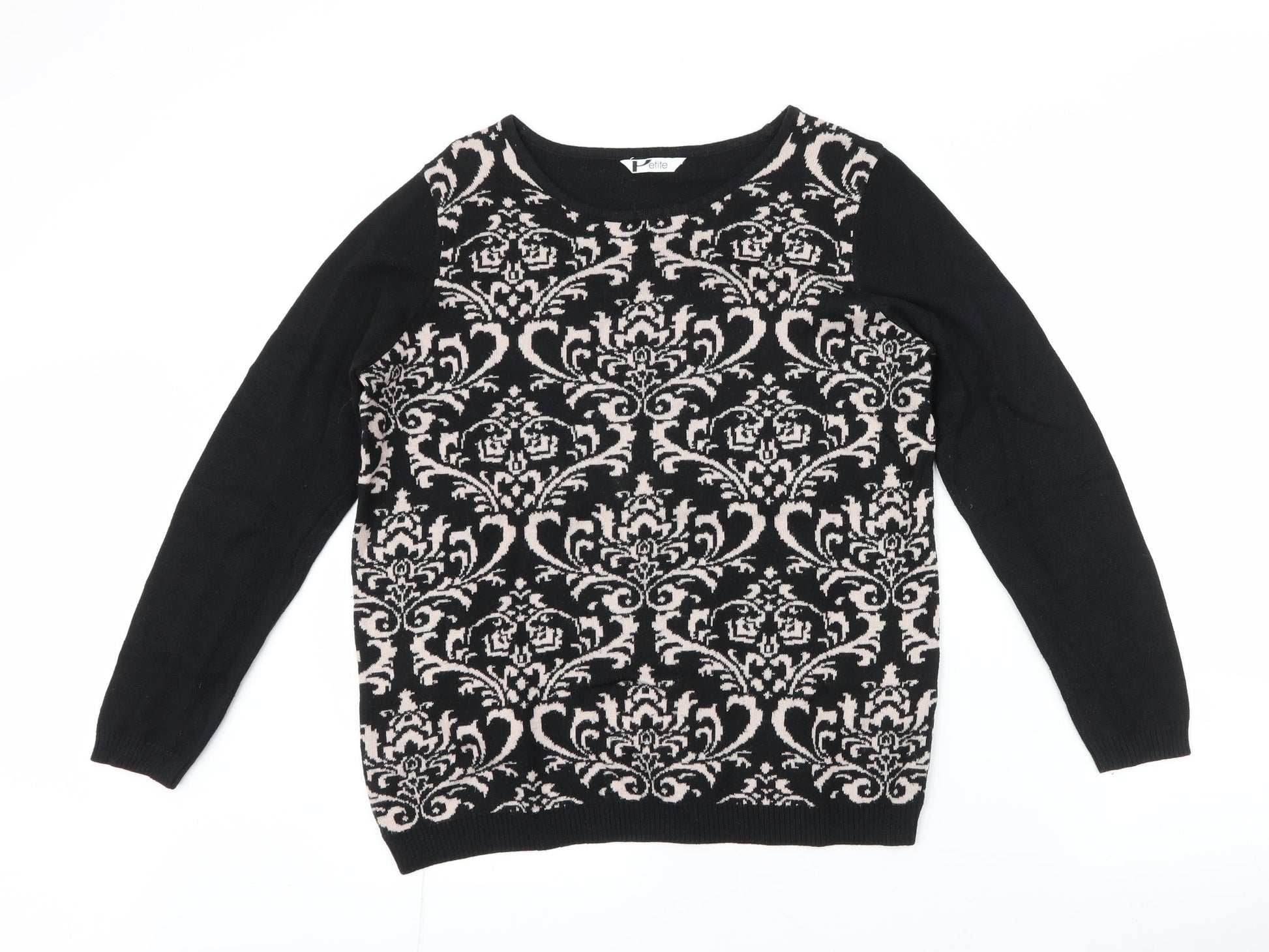 BHS Womens Black Round Neck Paisley Acrylic Pullover Jumper Size 14