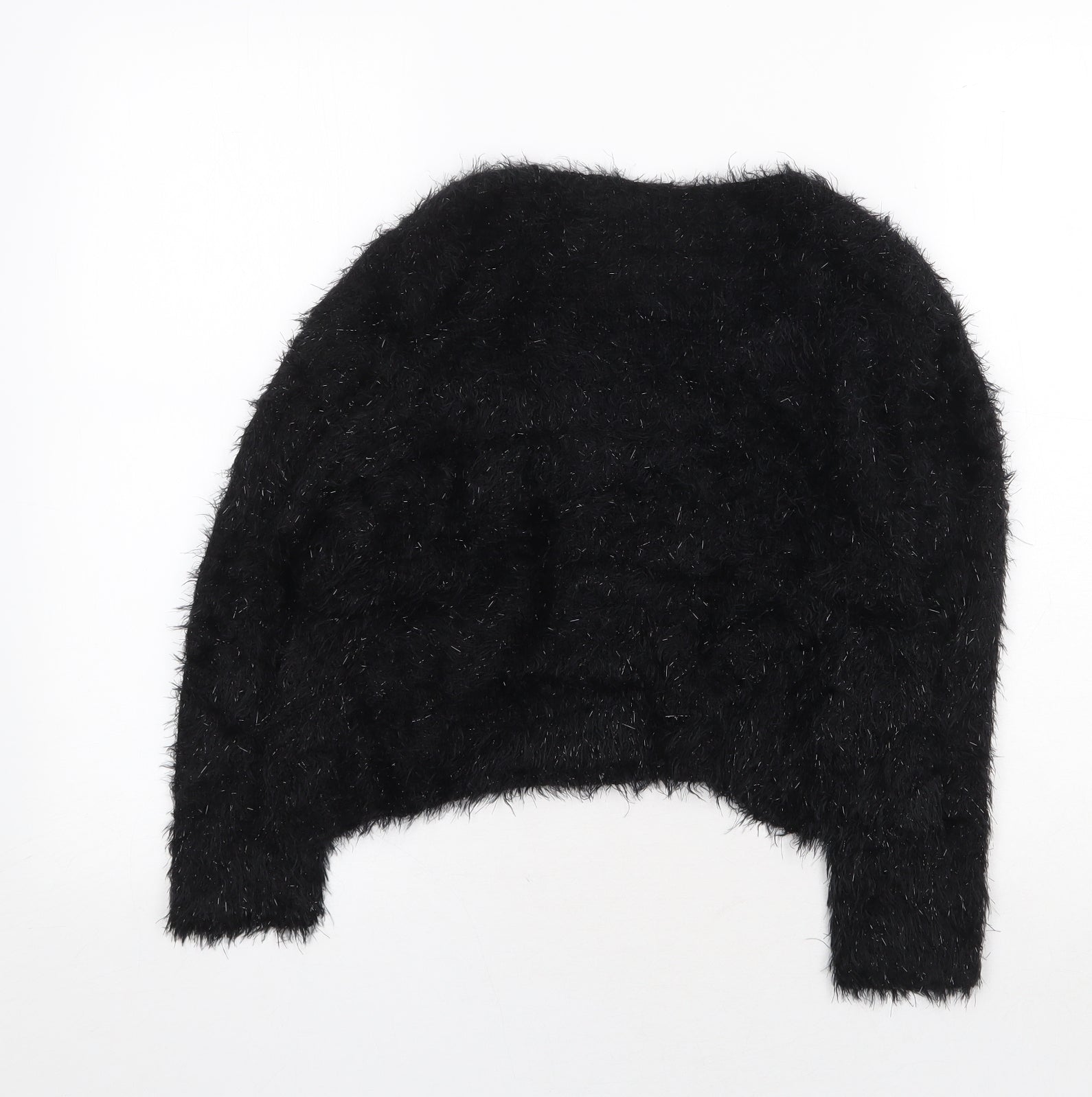 BHS Womens Black V-Neck Nylon Cardigan Jumper Size 10