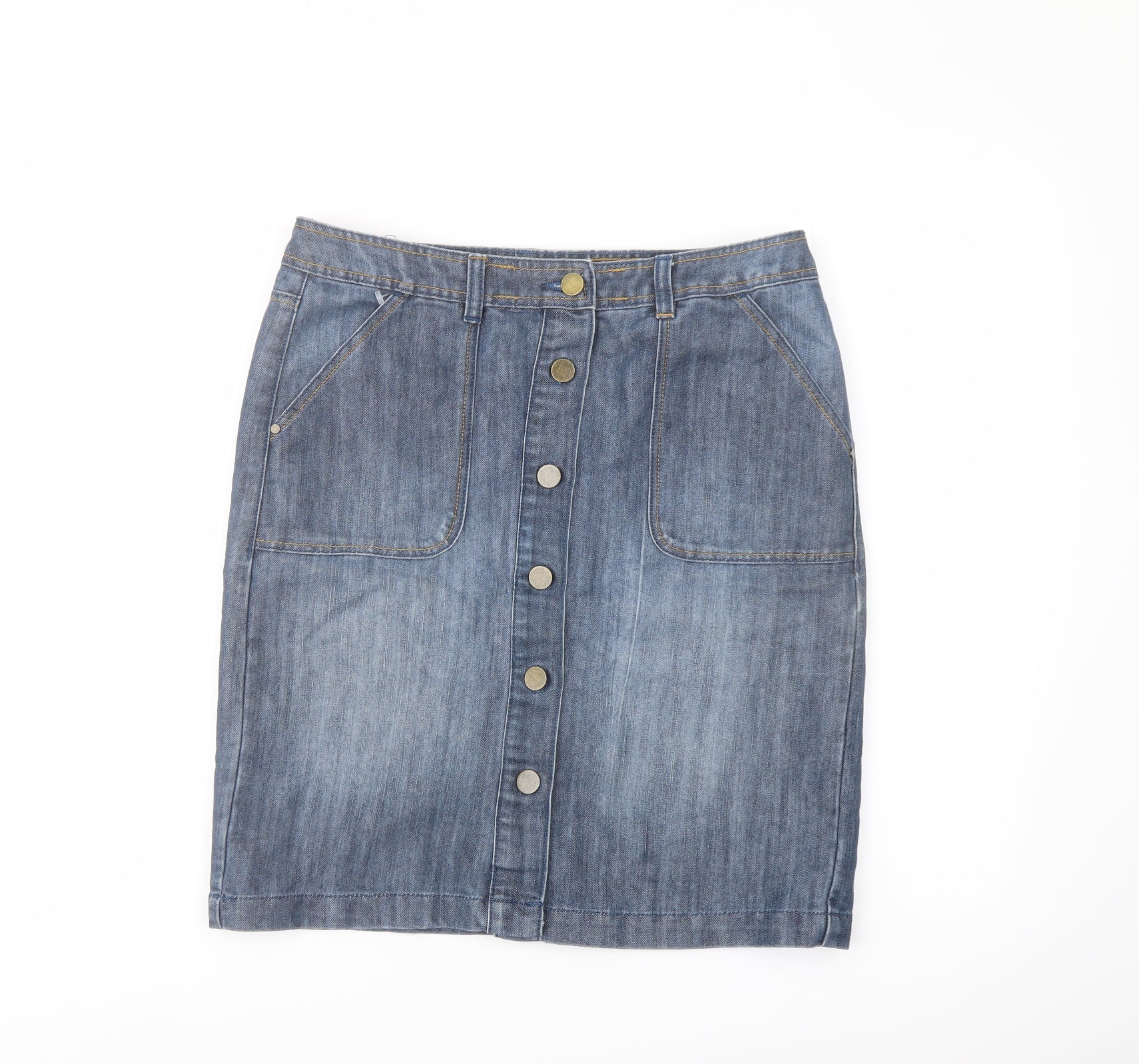 BHS Womens Blue Cotton A-Line Skirt Size 10 Button