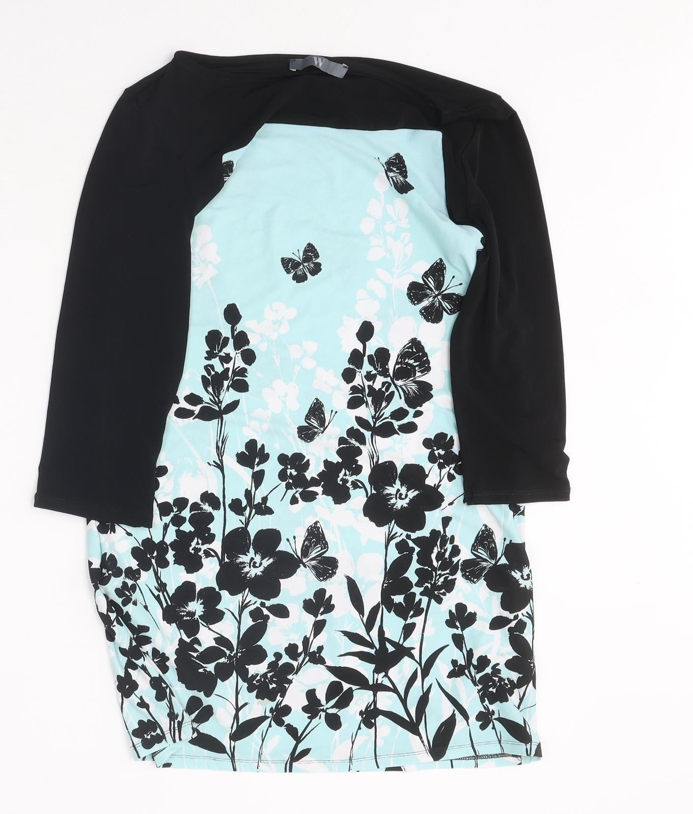 BHS Womens Blue Floral Polyester Slip Dress Size 10 Round Neck Pullover - Butterflies