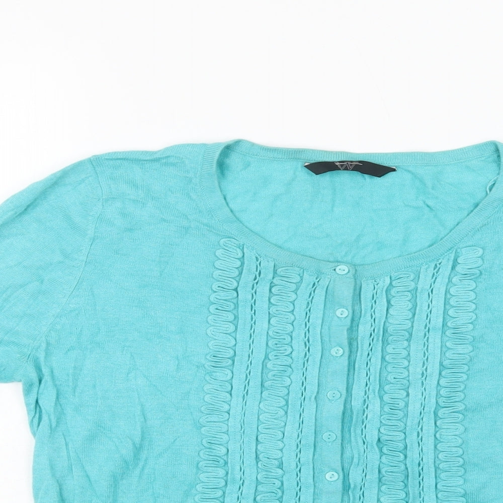 BHS Womens Blue Round Neck Cotton Cardigan Jumper Size 14