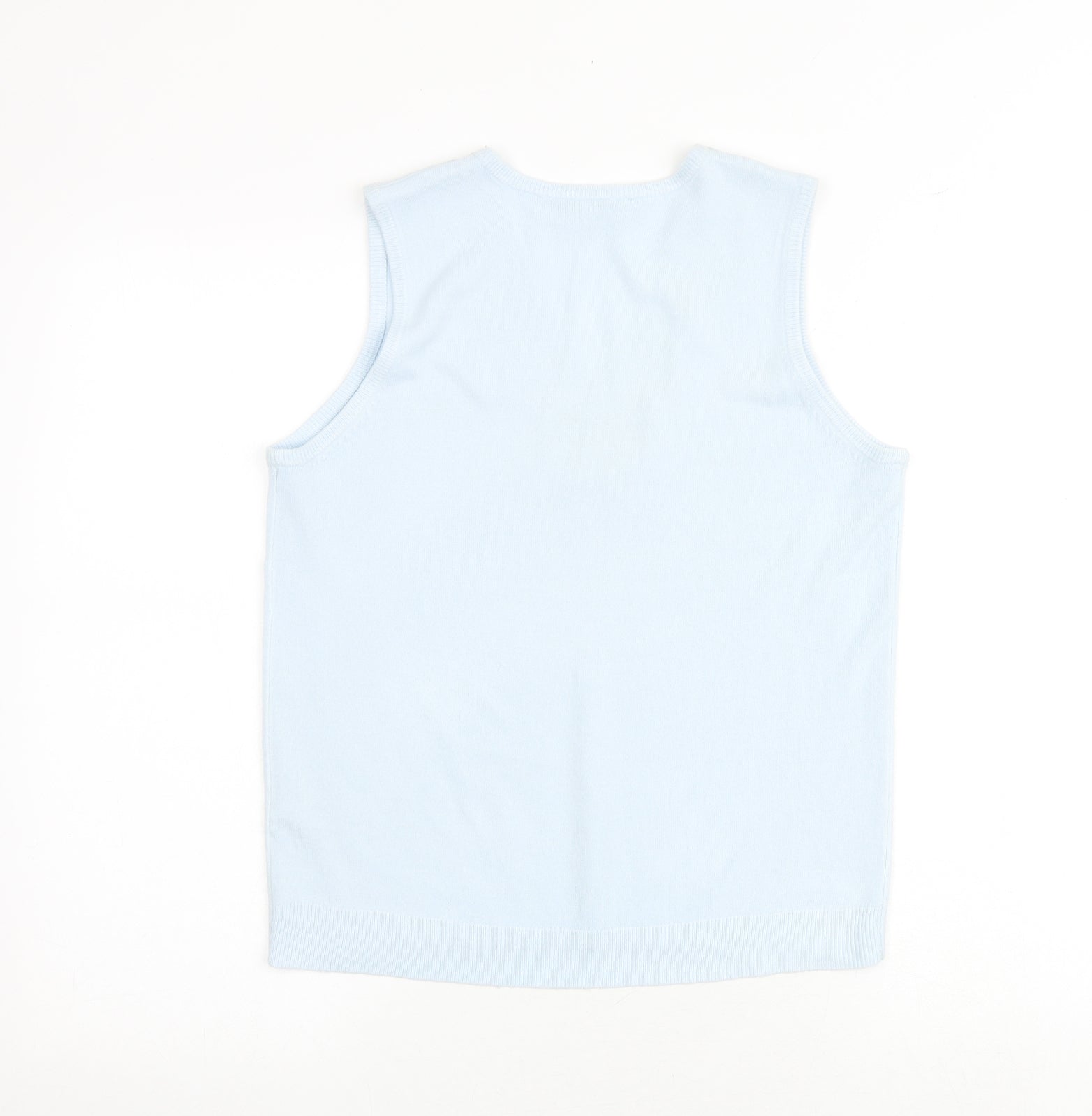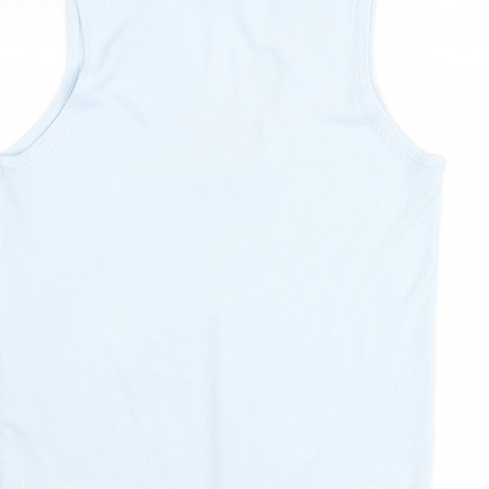 BHS Womens Blue V-Neck Acrylic Pullover Jumper Size 12 - Lace Detail