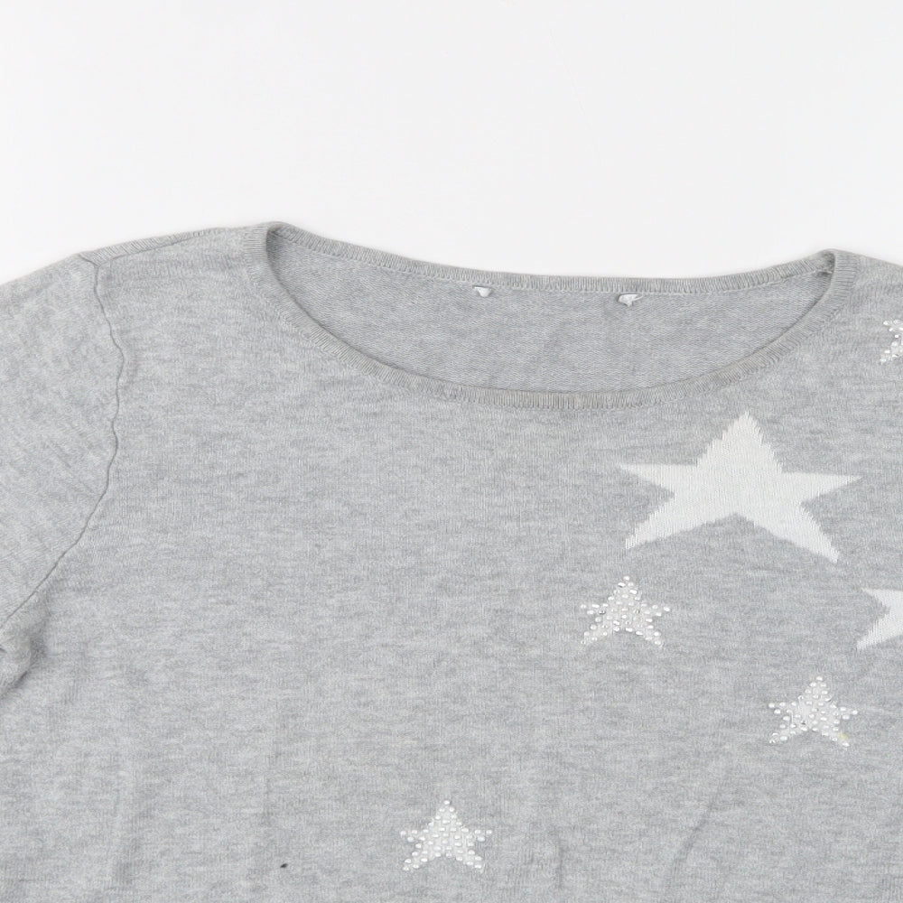 BHS Womens Grey Crew Neck Geometric Cotton Pullover Jumper Size 10 - Star Print