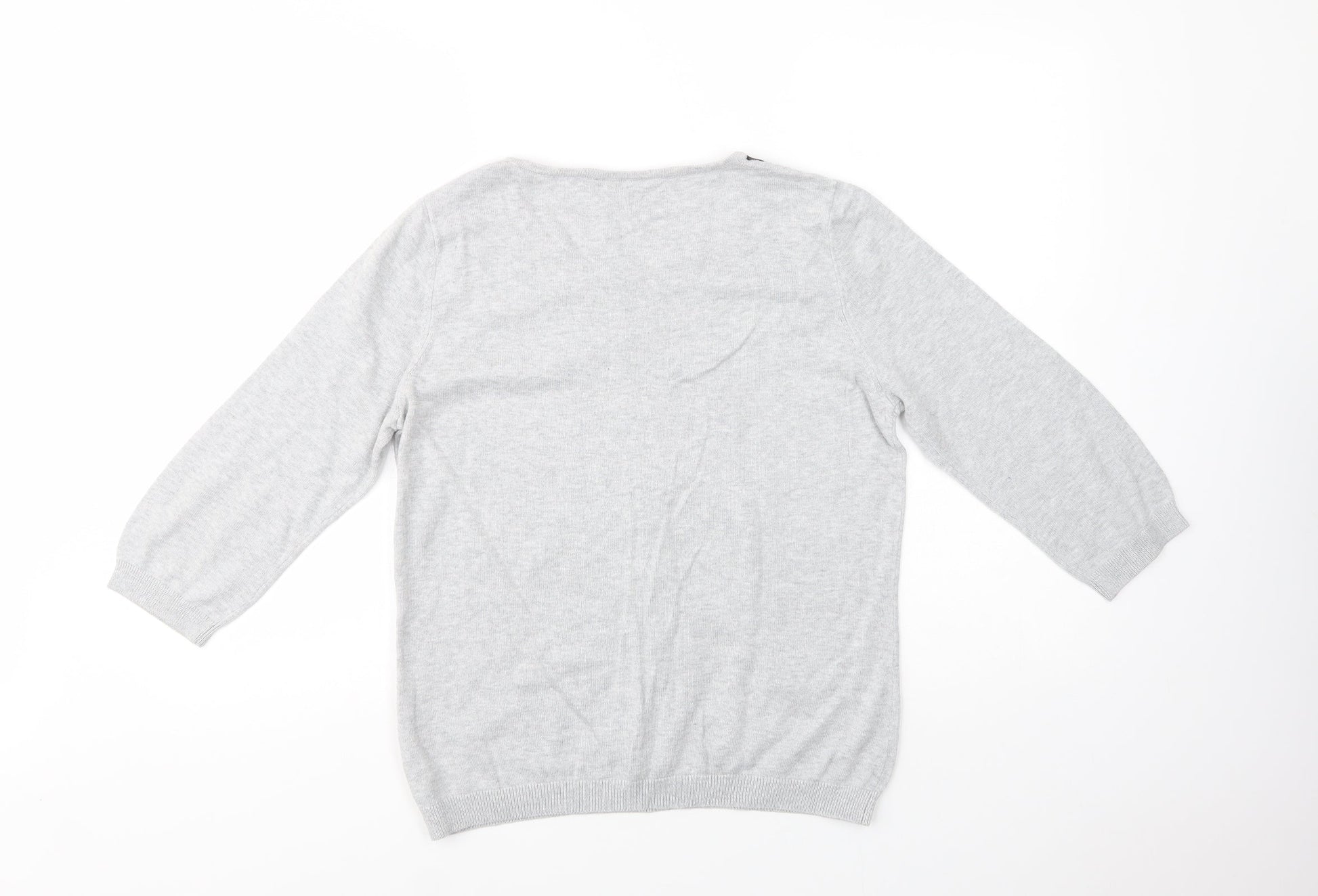 BHS Womens Grey Scoop Neck Cotton Pullover Jumper Size 14 - Lace Detail