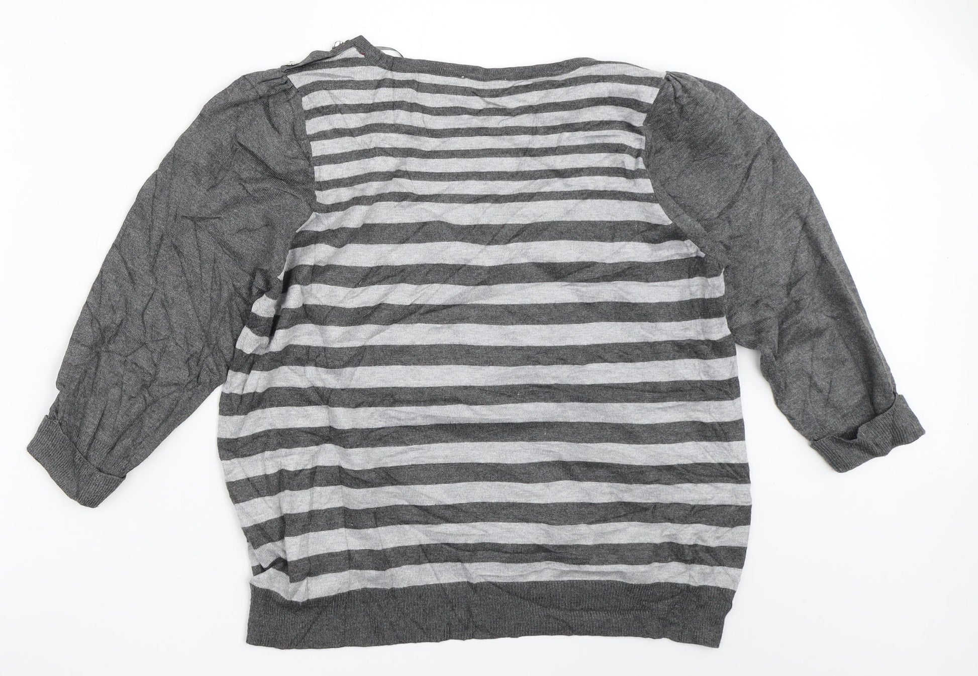 BHS Womens Grey Striped Pullover Jumper Size 16