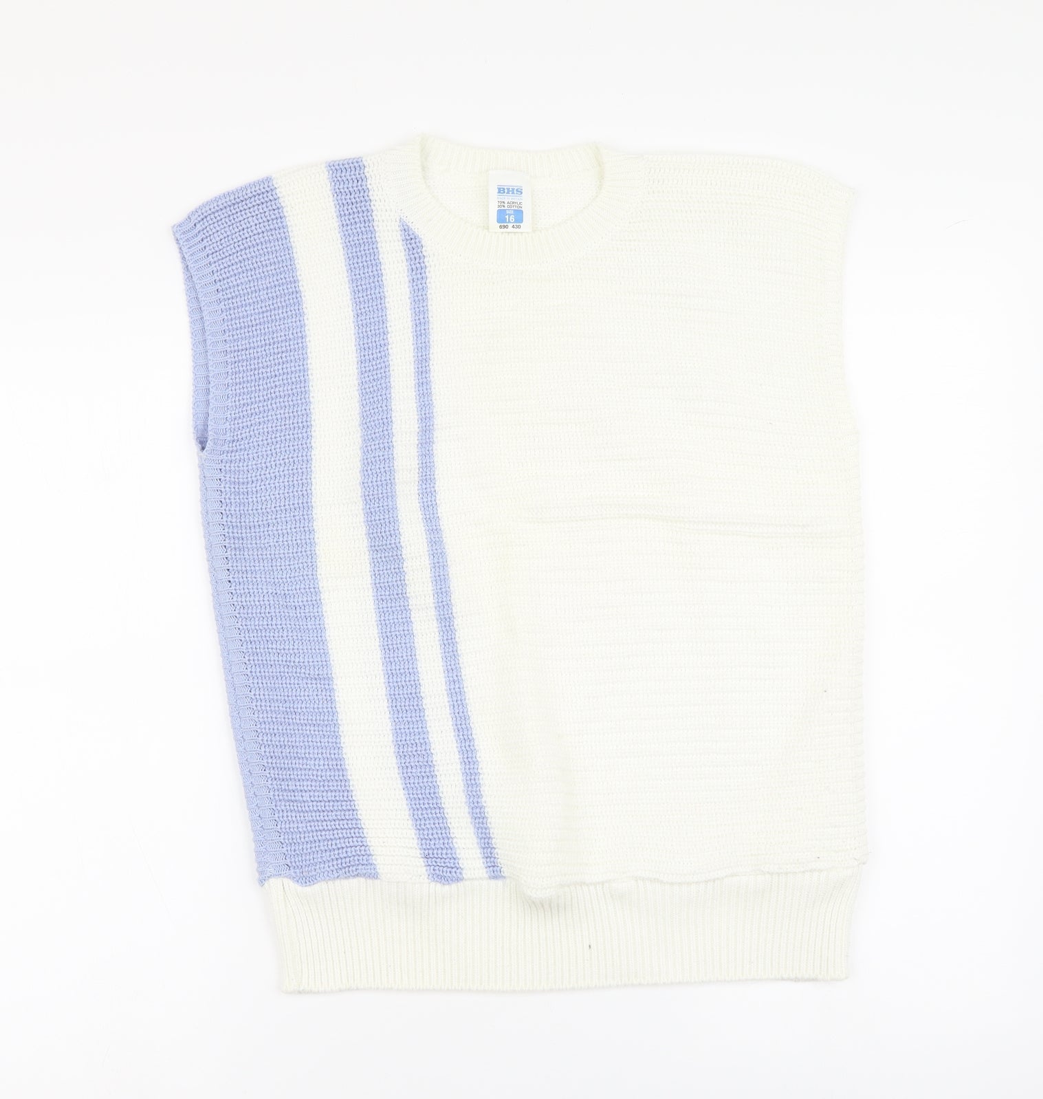 BHS Womens Ivory V-Neck Striped Acrylic Vest Jumper Size 16