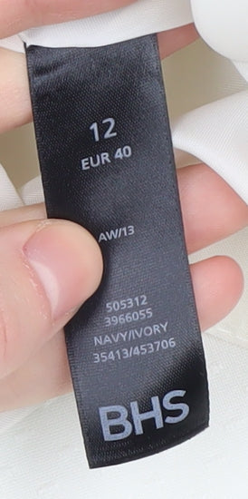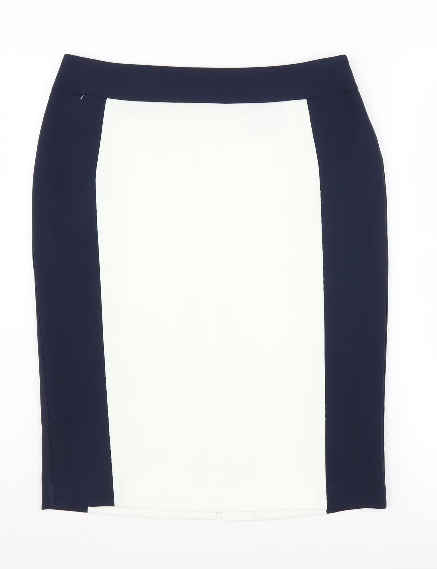 BHS Women's Navy Ivory Pencil Skirt, Size 12, Elegant Style