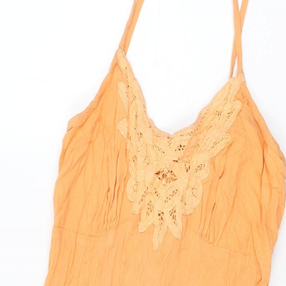 BHS Womens Orange Cotton Shift Size 10 V-Neck Pullover