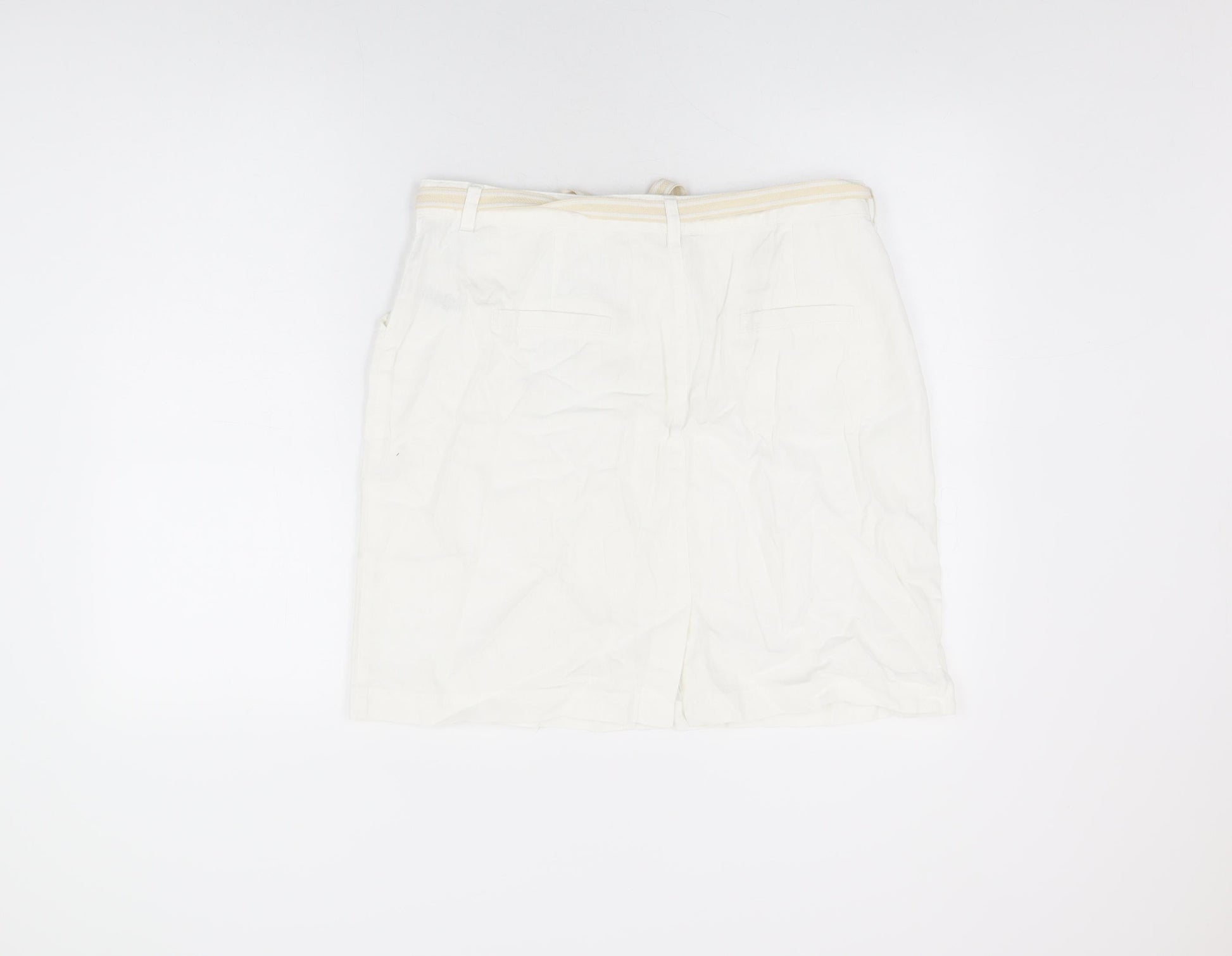 BHS Womens White Linen Mini Skirt Size 16 Zip - Belted