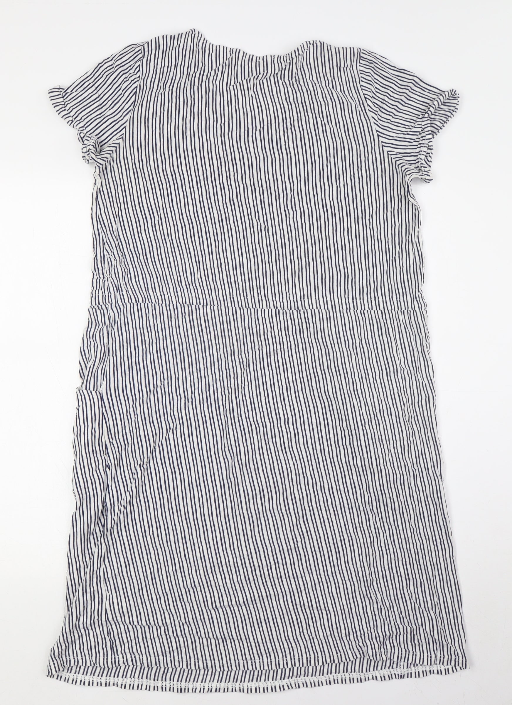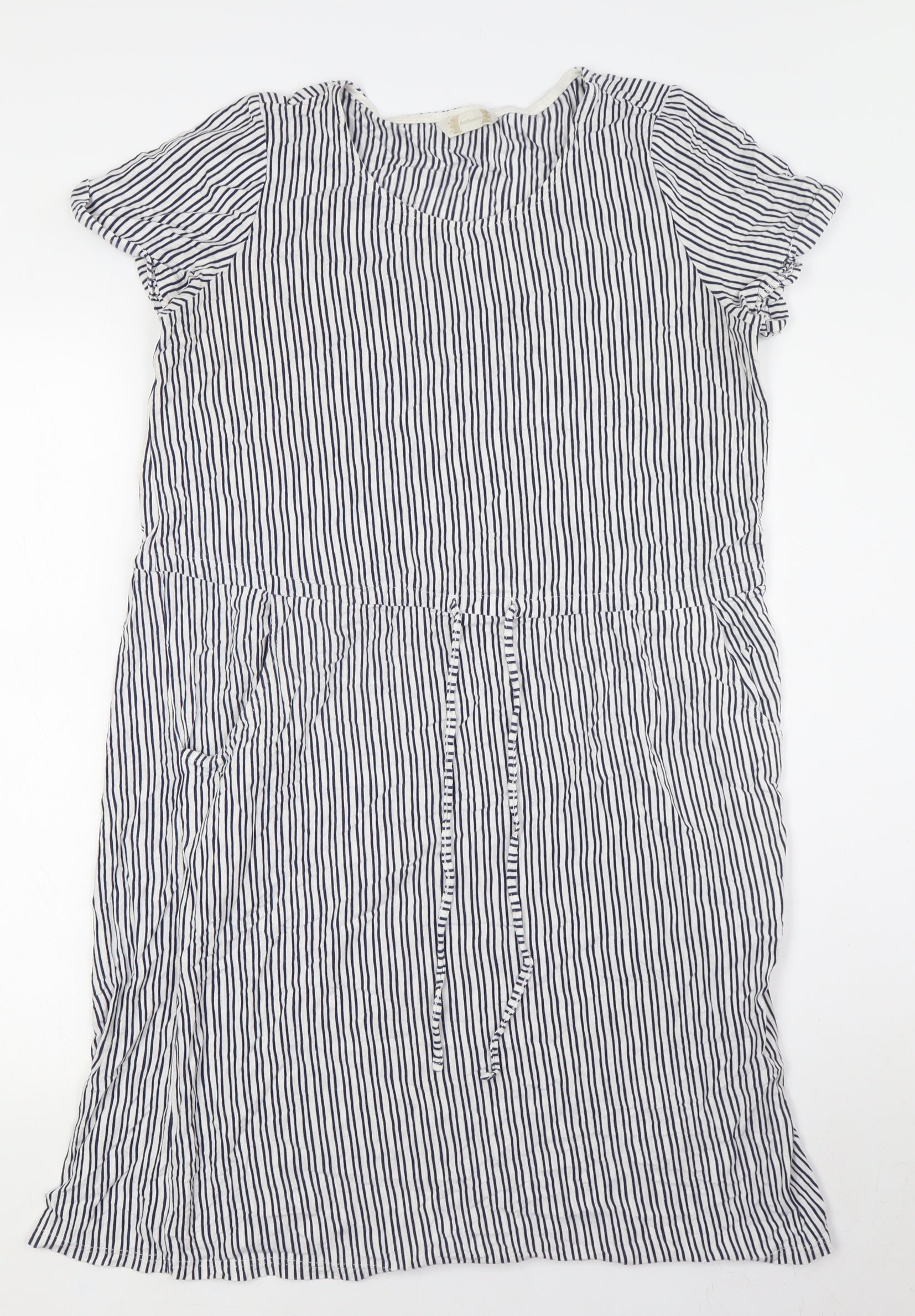 BHS Womens White Striped Cotton A-Line Size 12 Round Neck - Pull Waist