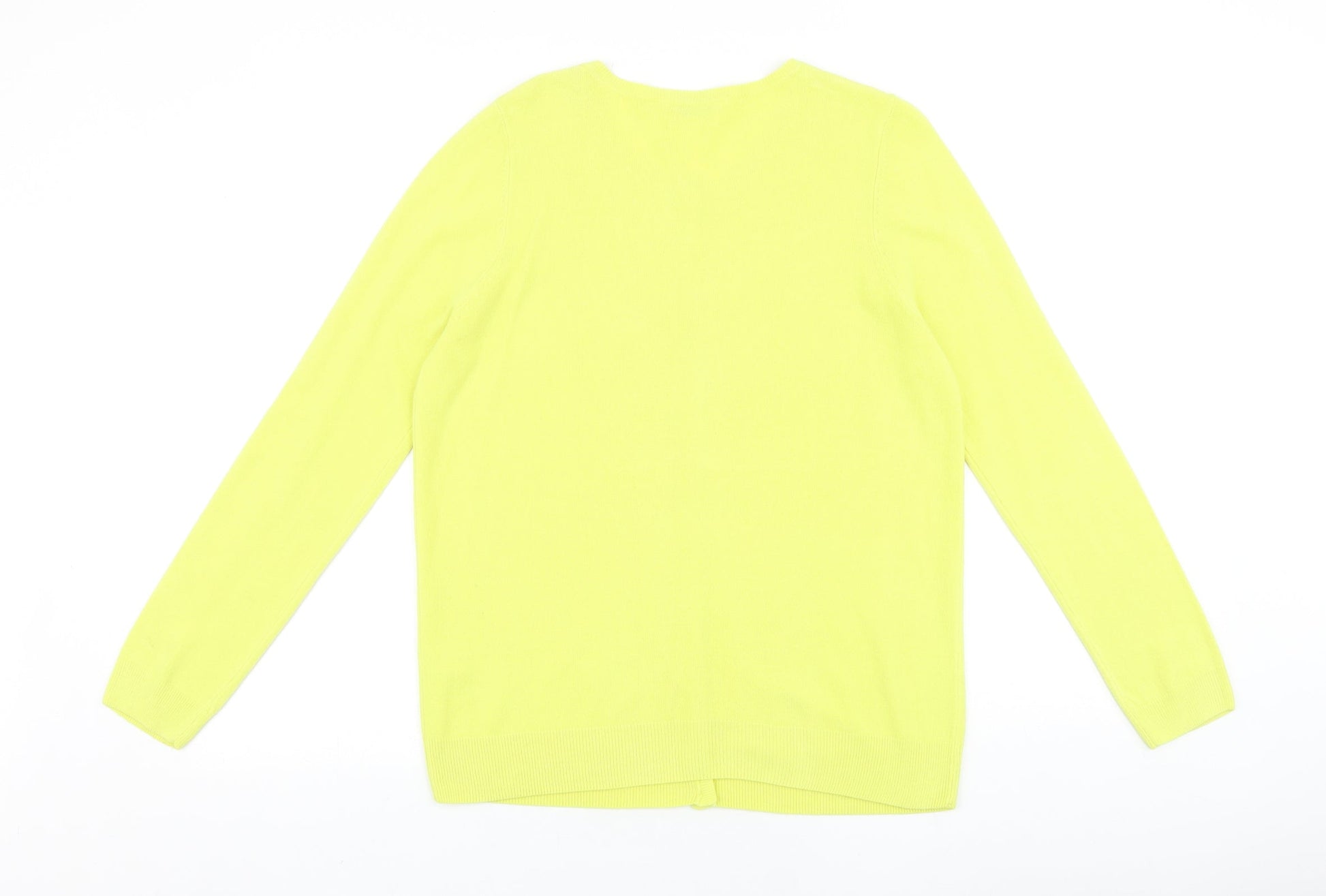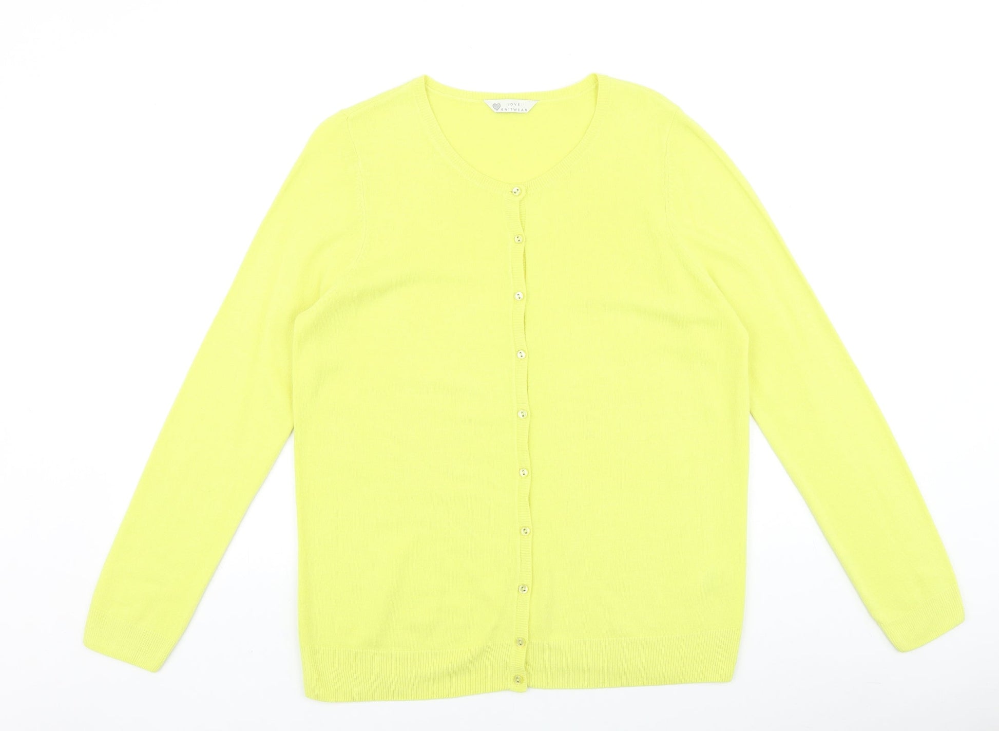 BHS Womens Yellow Round Neck 100% Cotton Cardigan Jumper Size 14
