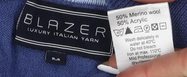 Blazer Men's Blue Pullover Jumper, Size S, Merino Wool