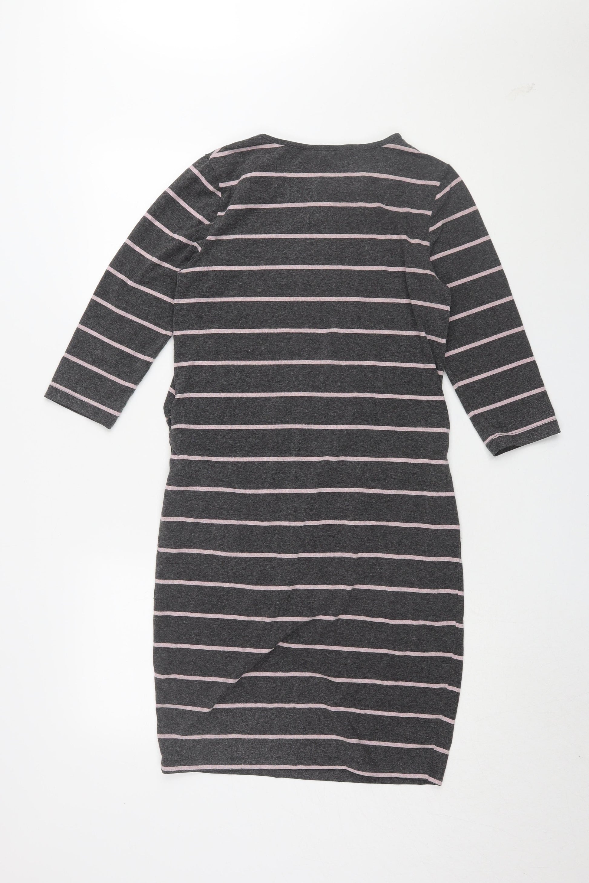 Blooming Marvellous Women's Grey Striped Bodycon Dress Size 10