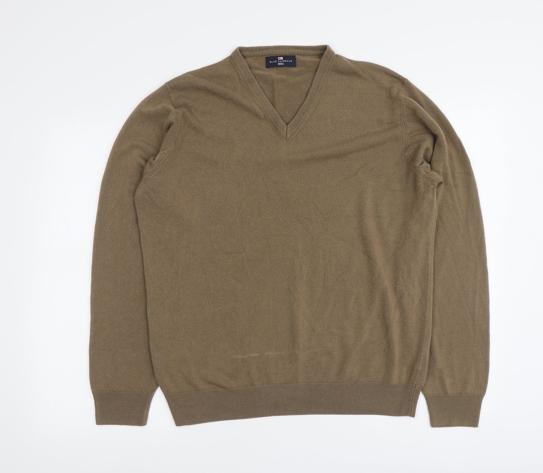 Blue Harbour Mens Beige V-Neck Acrylic Pullover Jumper Size L