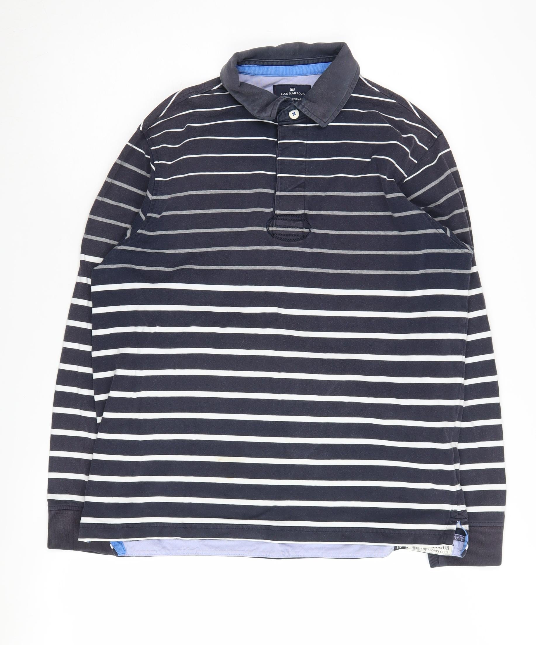 Blue Harbour Men's Black M Striped Long Sleeve Polo