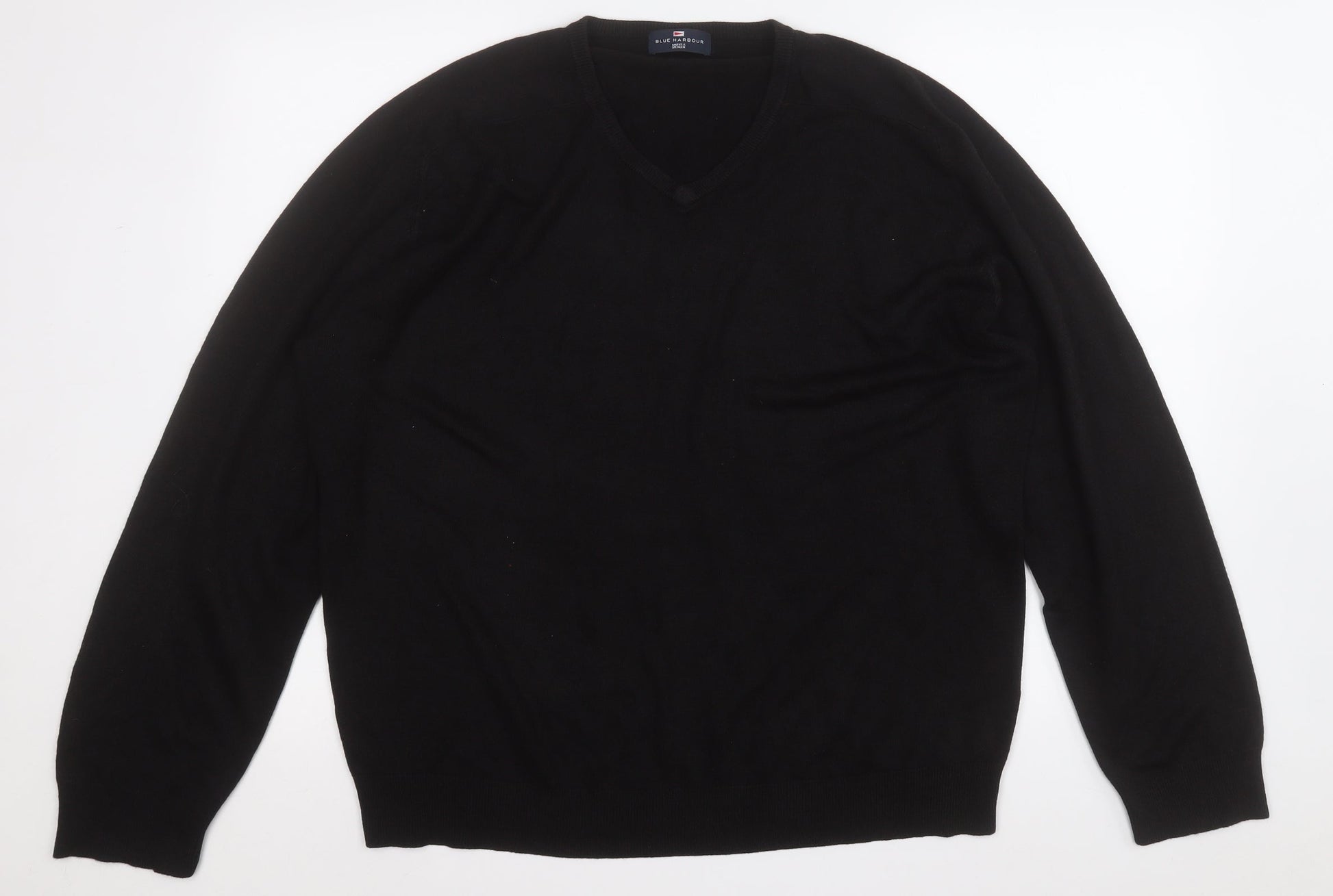 Blue Harbour Mens Black Round Neck Acrylic Pullover Jumper Size 2XL