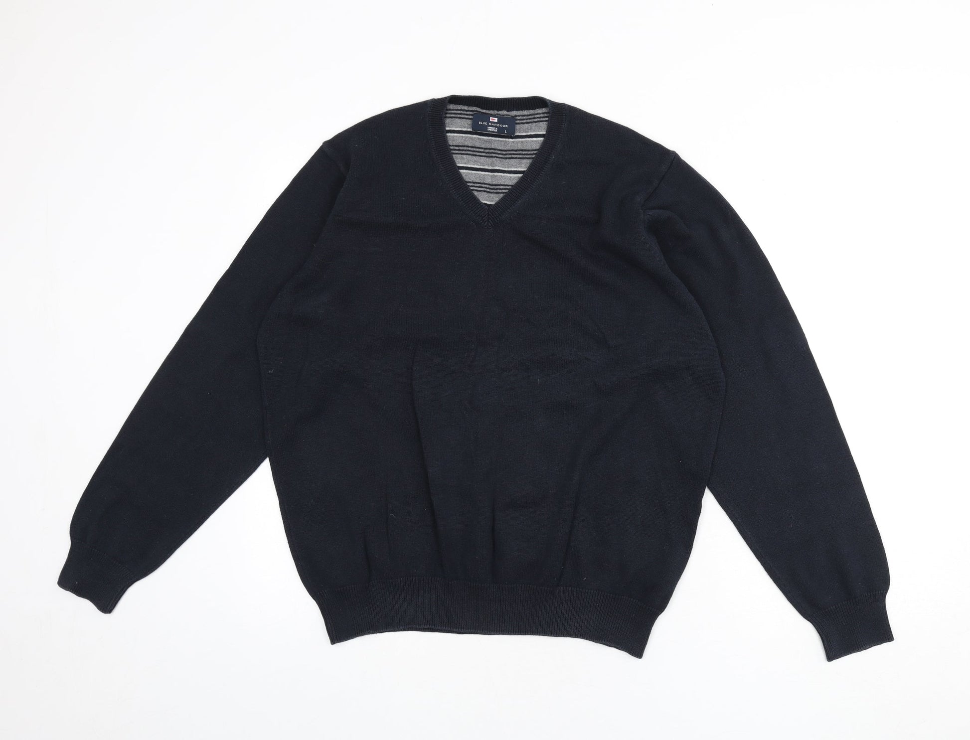 Blue Harbour Mens Blue V-Neck Cotton Pullover Jumper Size L Long Sleeve