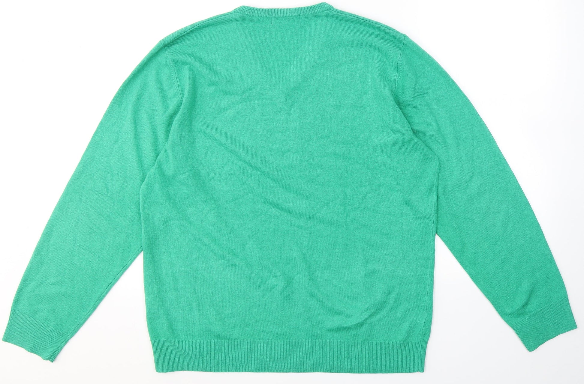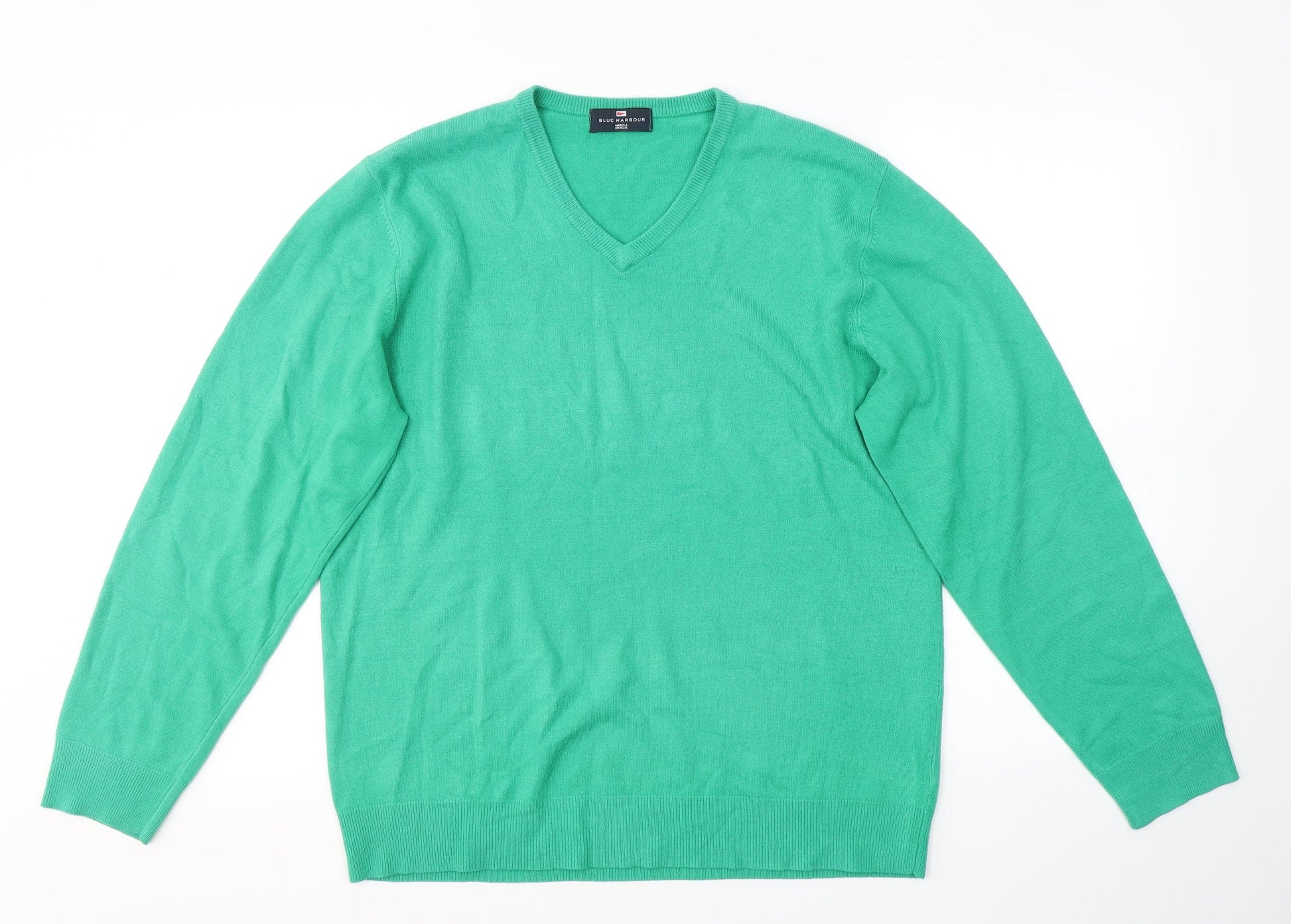 Blue Harbour Mens Green V-Neck Acrylic Pullover Jumper Size L