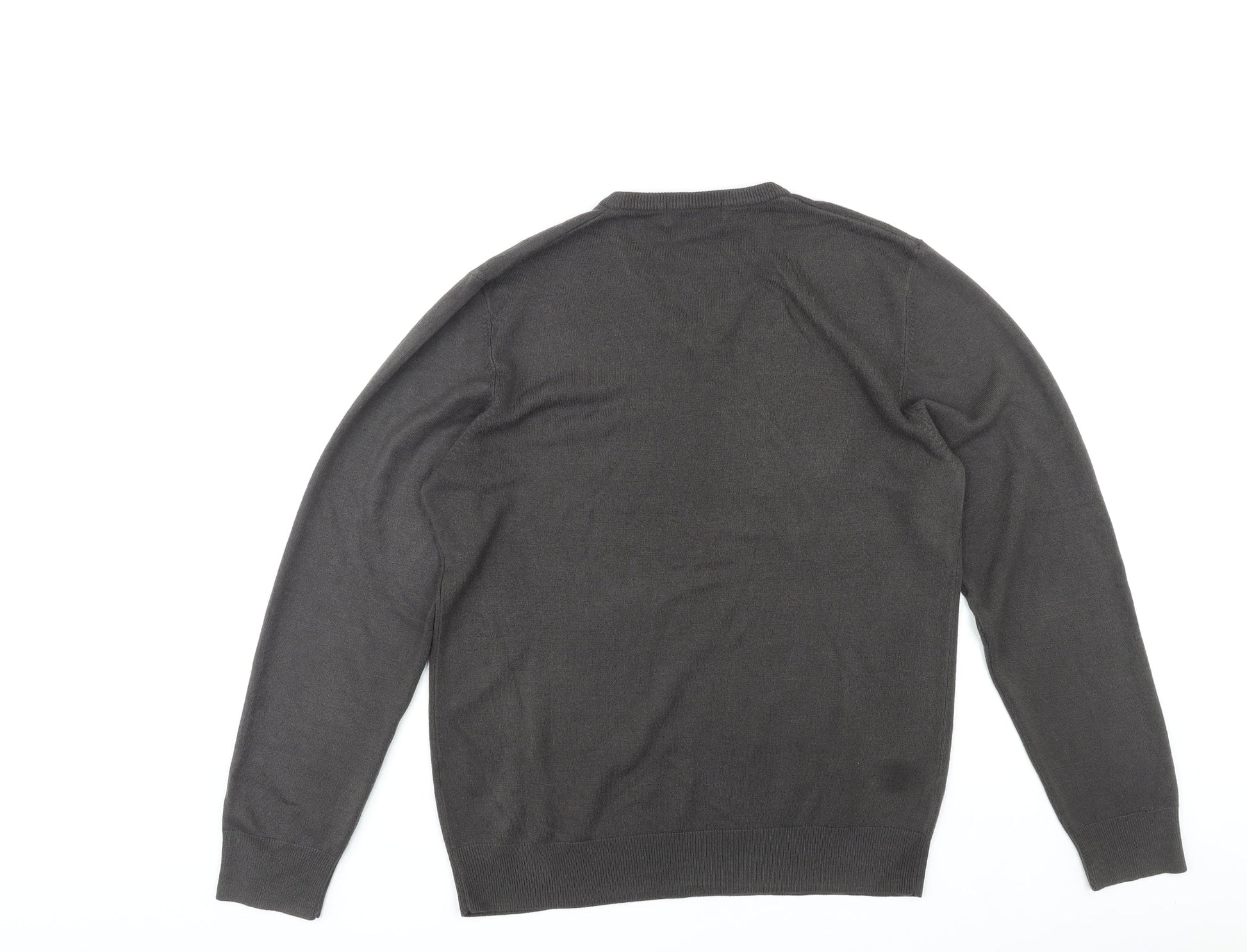 Blue Harbour Mens Grey V-Neck Acrylic Pullover Jumper Size M Long Sleeve