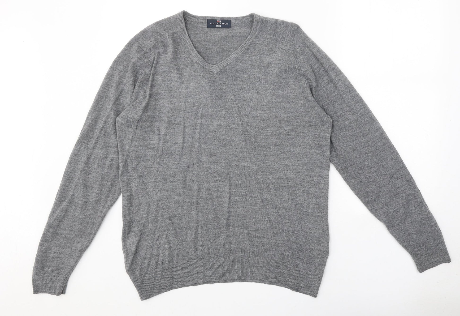 Blue Harbour Mens Grey V-Neck Acrylic Pullover Jumper Size S Long Sleeve