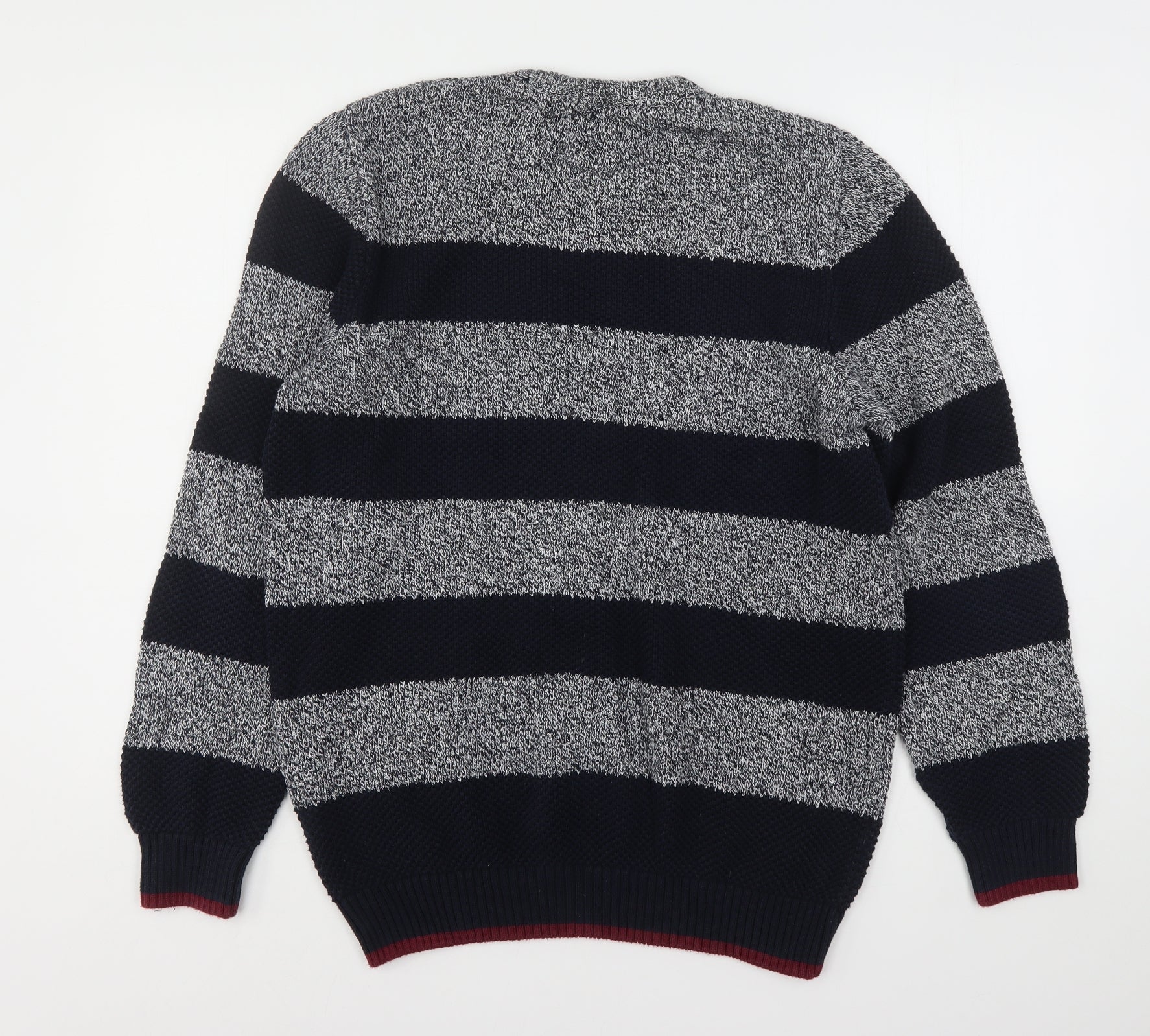 Blue Harbour Mens Multicoloured Round Neck Striped Cotton Pullover Jumper Size L