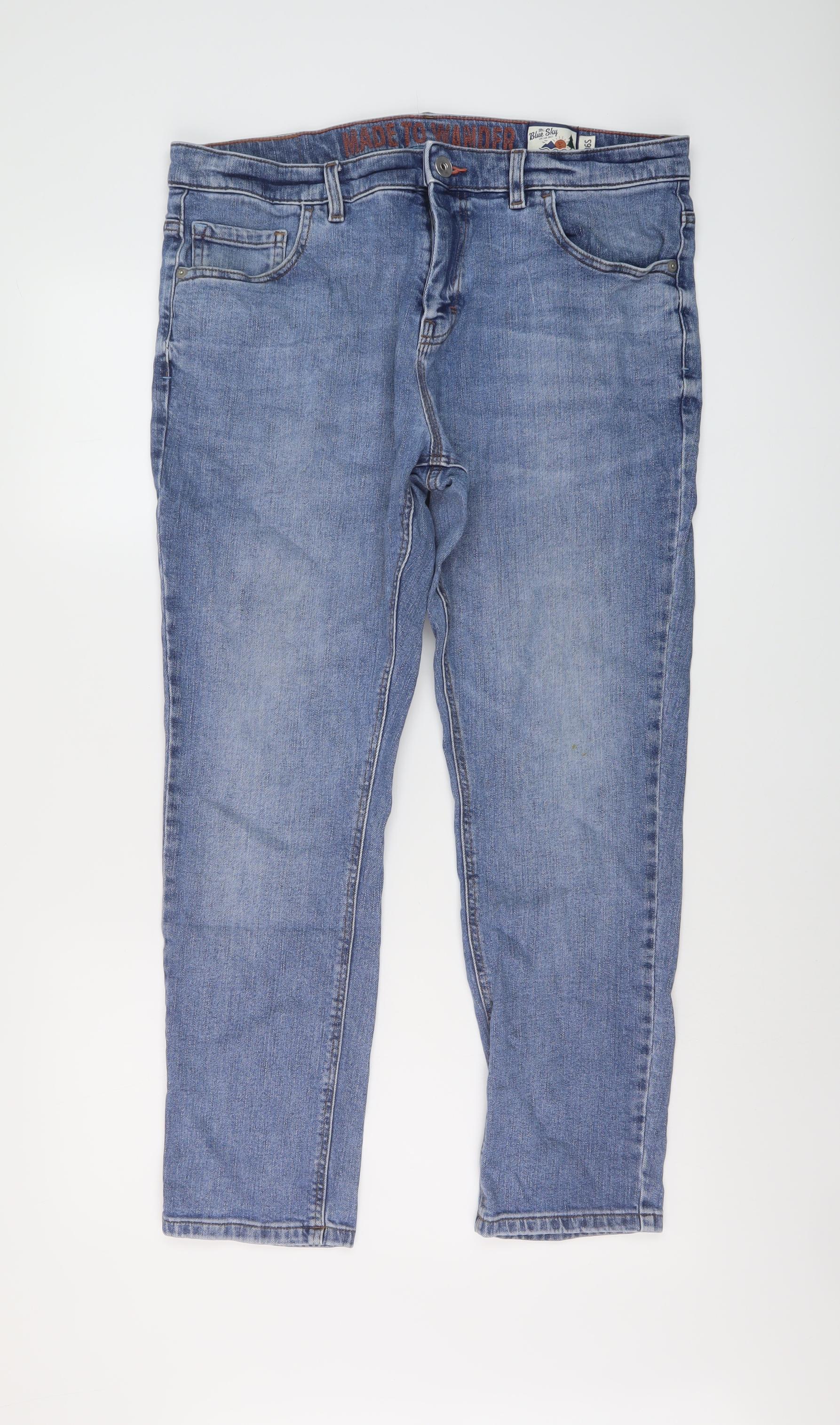 Blue Sky Mens Blue Cotton Straight Jeans Size 36 in L27 in Regular Button